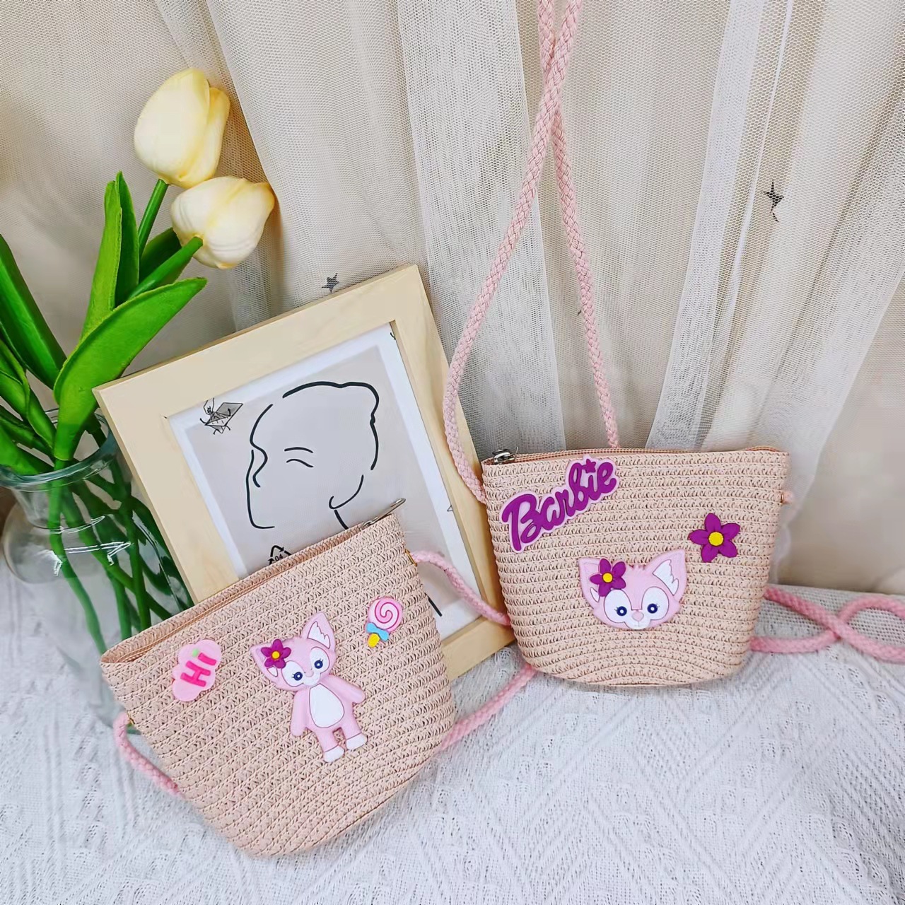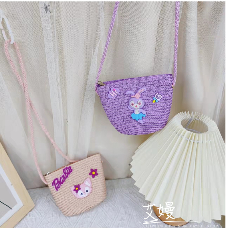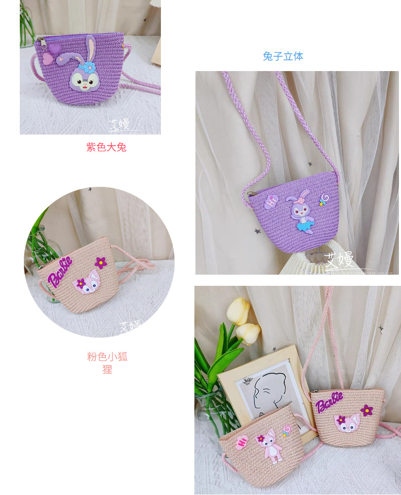 春夏新款动漫卡通迷你包包儿童星黛紫兔子儿童包包草编网红斜挎包 投诉
