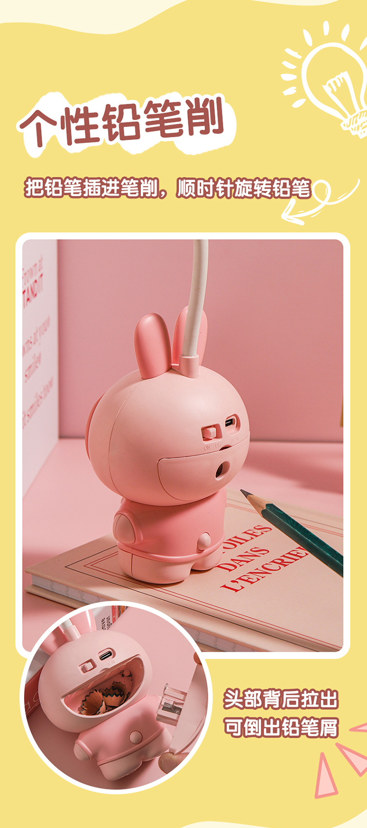 卡通兔子小夜灯 LED充电小台灯学生桌面铅笔削台灯文具礼品小夜灯 English | 投诉
