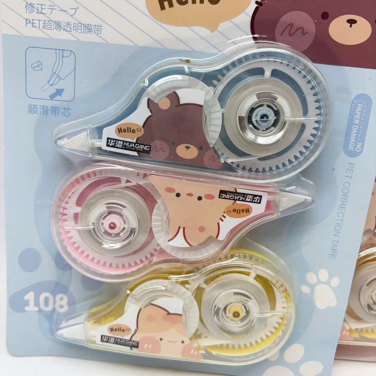 可爱卡通创意3个优惠装学生用品涂改带修改错字透明膜修正带批发