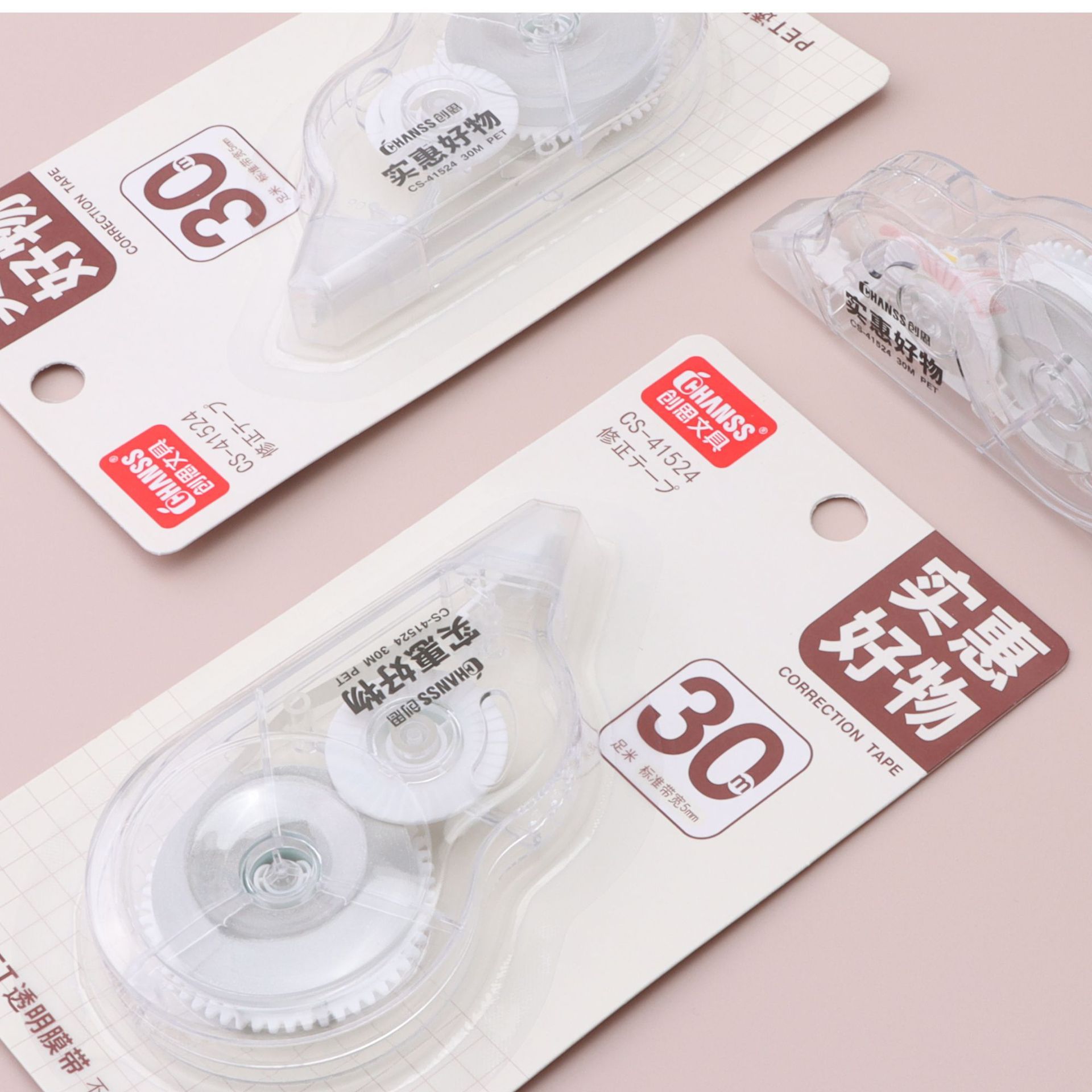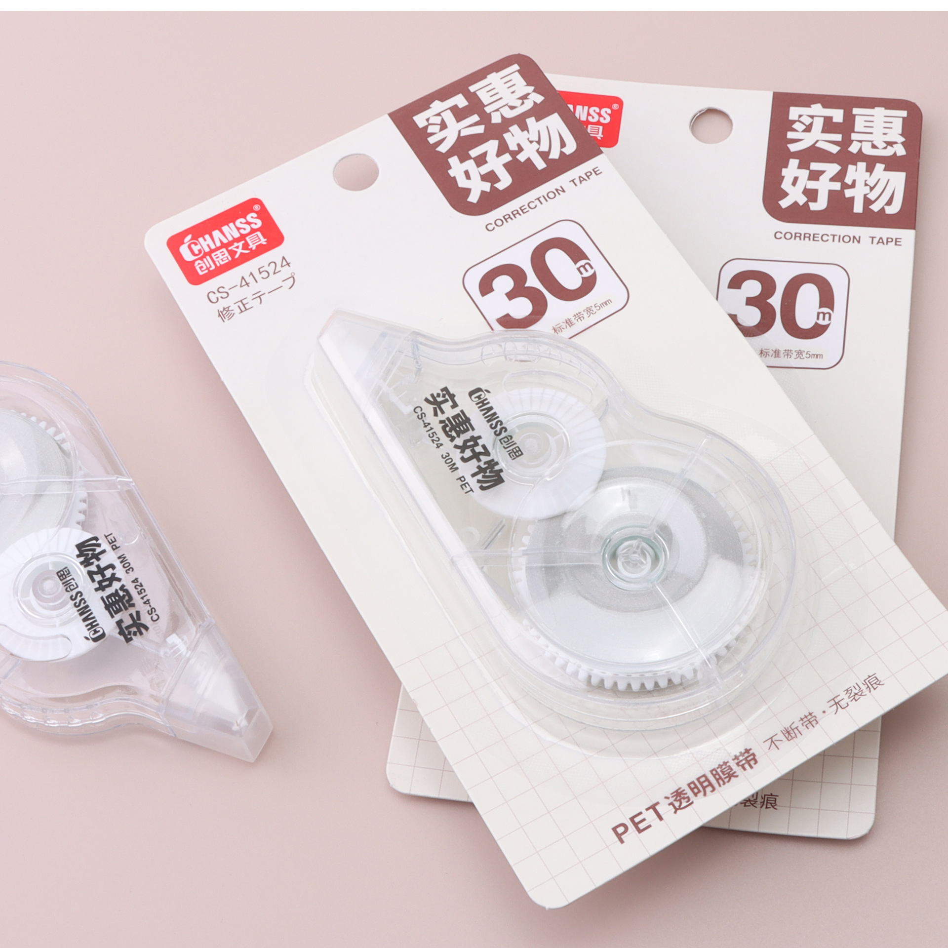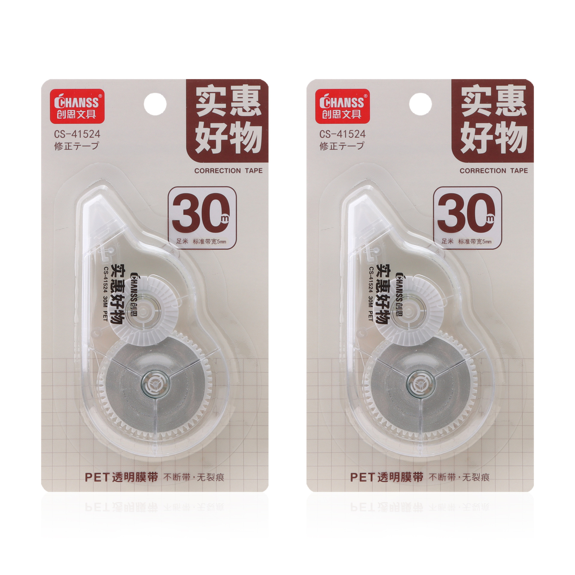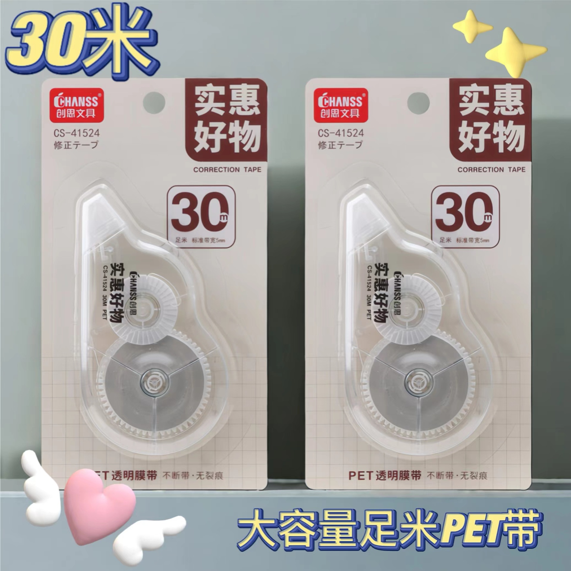大容量修正带30米足米PET不断带涂改带学生办公用实惠改正带批发