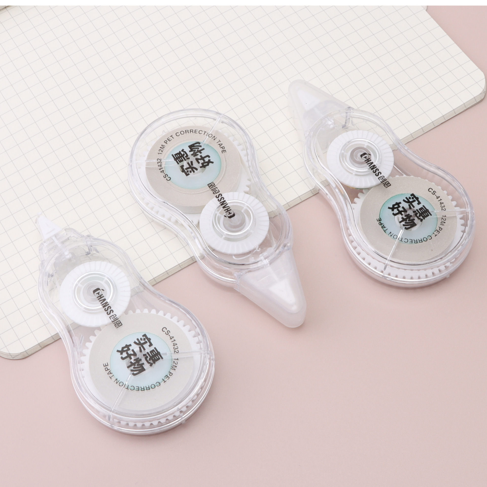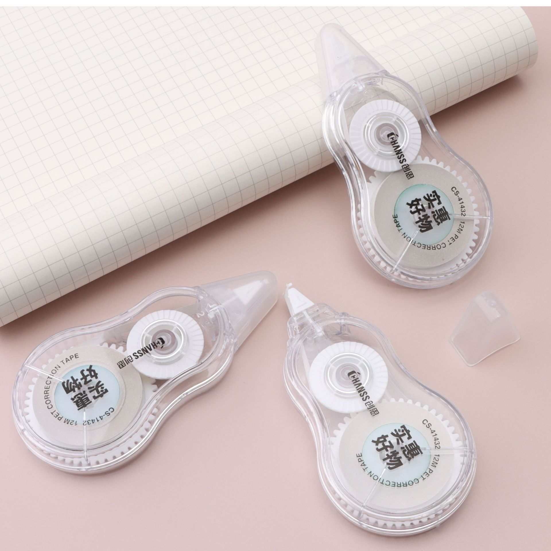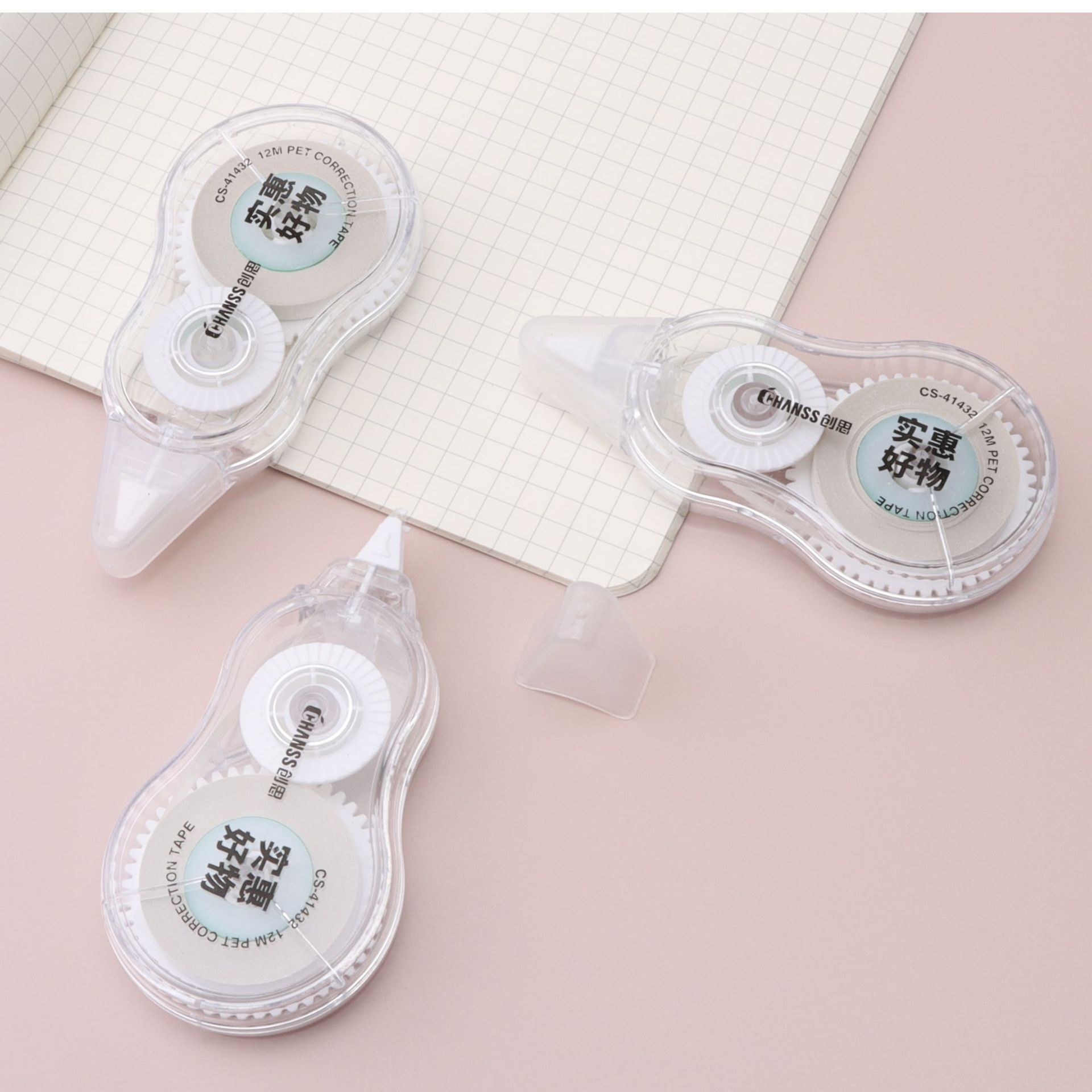 创思实惠好物3个装修正带12米PET涂改带简约学生办公用改正带足米