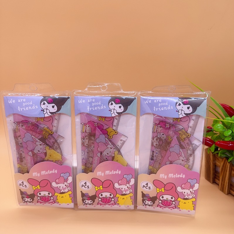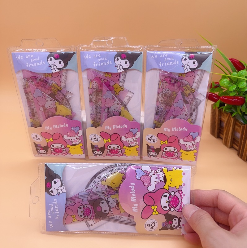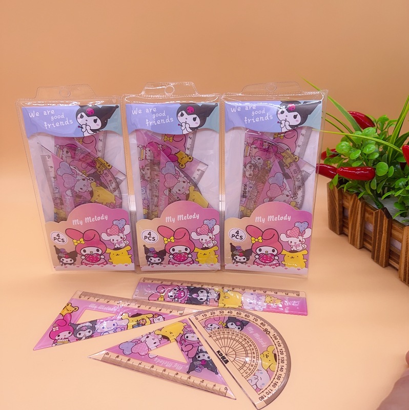 可爱卡通学生套尺套装三角尺量角器直尺四合一学习套装儿童工具尺