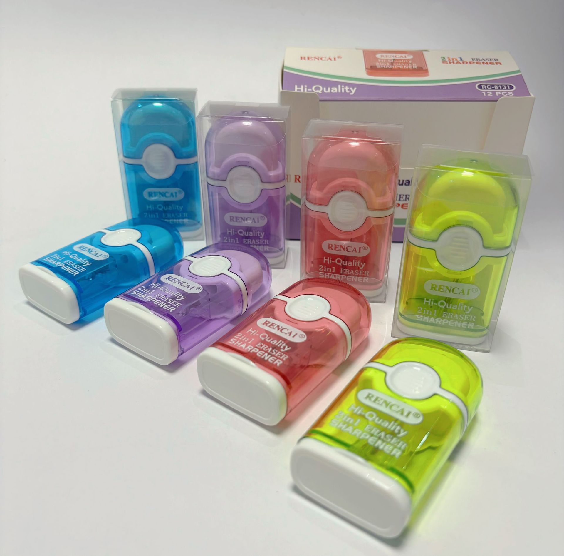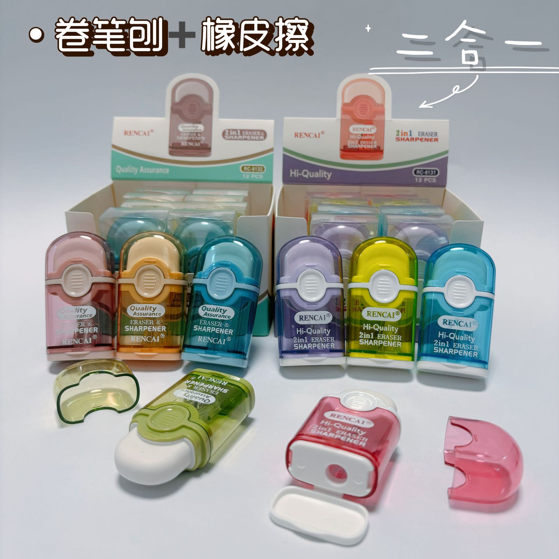 跨境专供多功能二合一卷笔刀带橡皮擦小学生削笔刀文具便捷铅笔刀