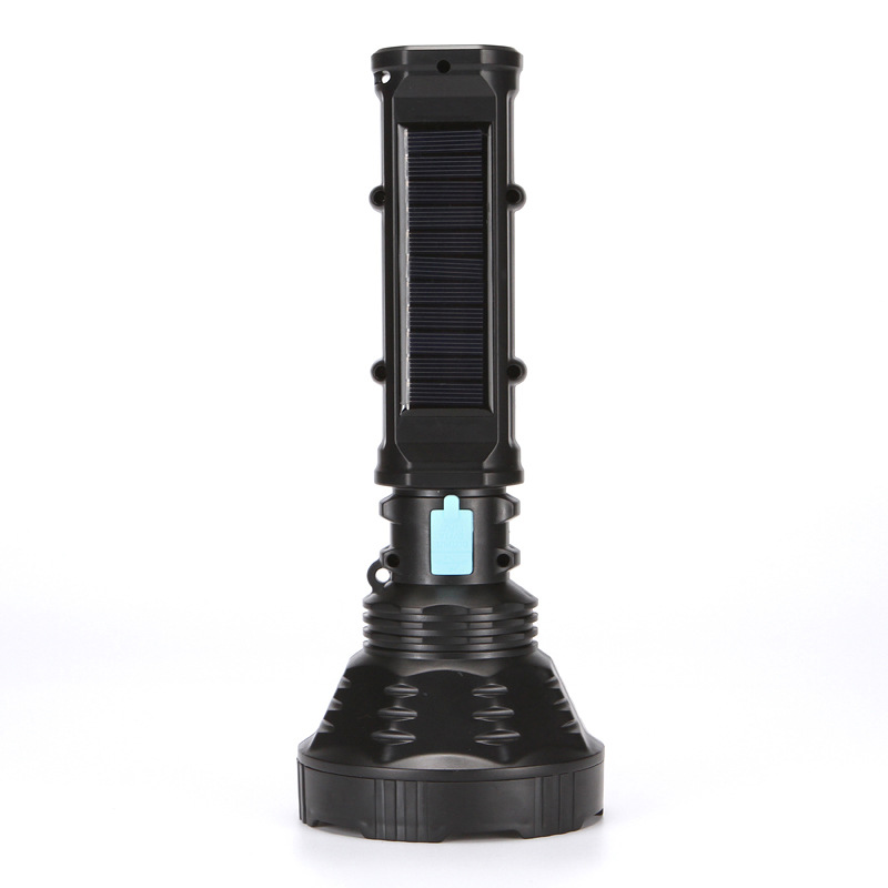 跨境手持太阳能手电筒强光 充电远射超长续航户外应急手持手电筒