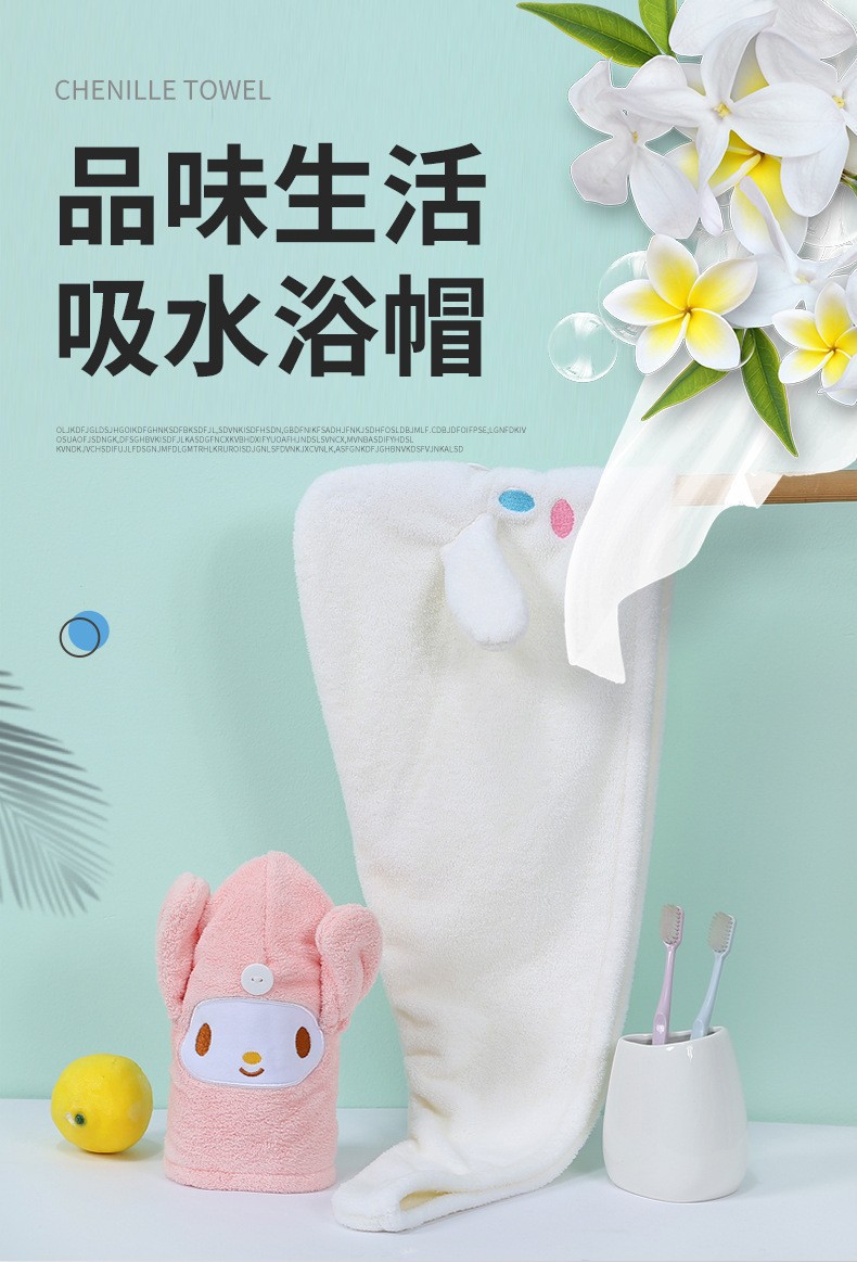 新款美乐蒂玉桂狗干发帽柔软吸水速干珊瑚绒刺绣花浴帽卡通包头巾 English | 投诉