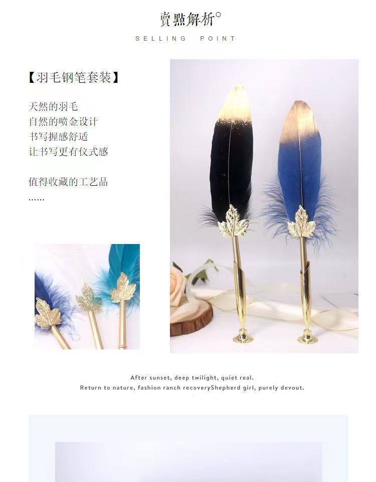 多伶文化制笔厂创始于:1998年,在国际商贸城三区市场设有实体店,可开增值税发票,专票, 专业生产:欧式复古羽毛笔,创意文具礼品套装..... 款式齐全,价格优势,专业供货:外贸公司,国外跨境,国内外商超实体店,常年500多款现货 实力供应!所有产品可根据客户需求定制生产,可定制不同的:图案,文字,logo 品牌 外包装 实力老工厂 , 爆款上新快, 质量有保证,量大价优,原创专利设计, 批发客户请与老板娘联系报价. 联系手机号微信同号:13616794052,真诚期待与您的合作!