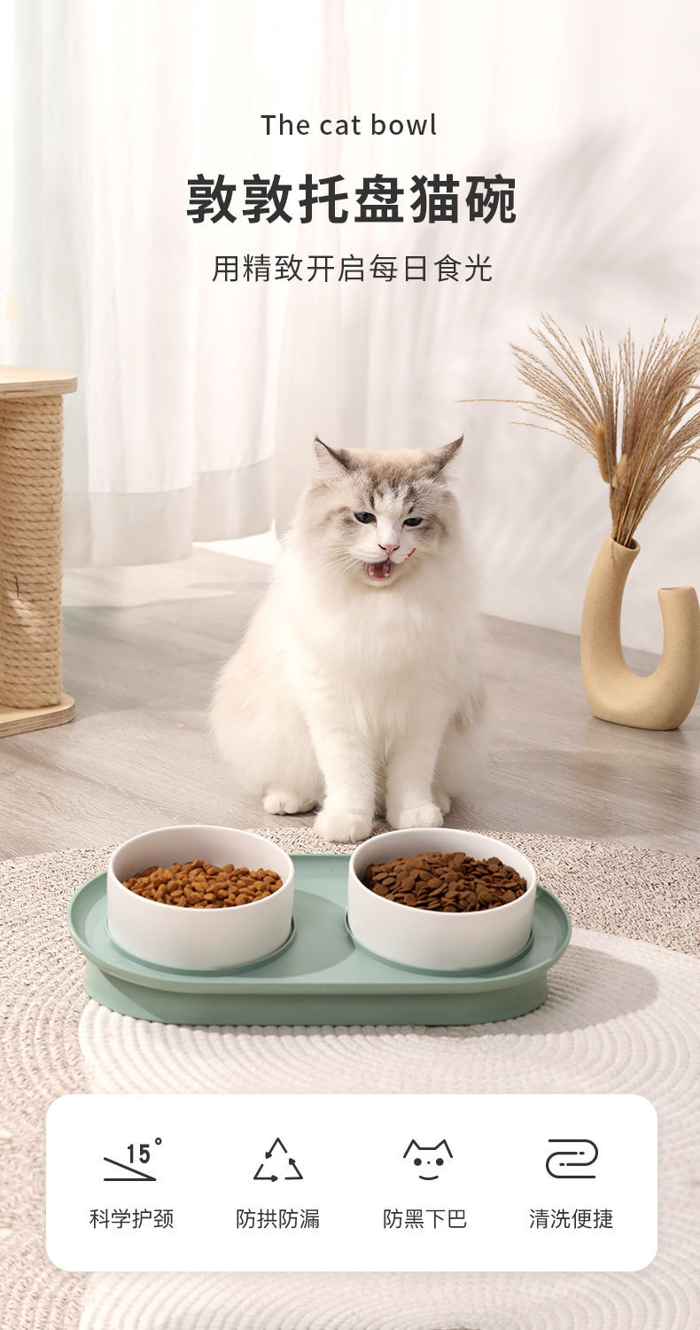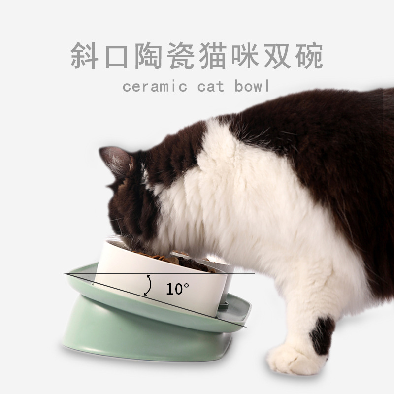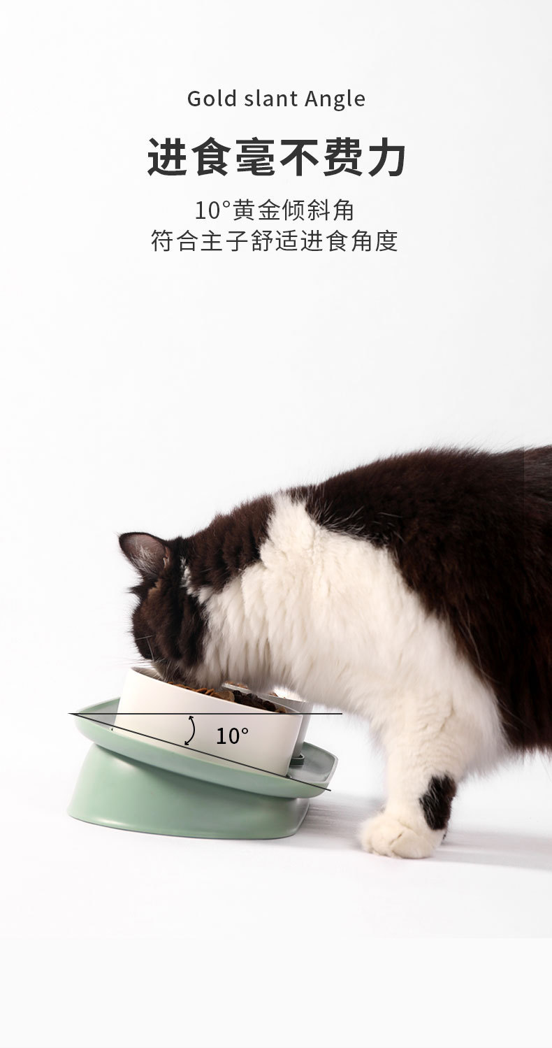 猫碗陶瓷月半碗防黑下巴倾斜款猫咪饭碗水碗小型犬狗碗防打翻食盆 投诉
