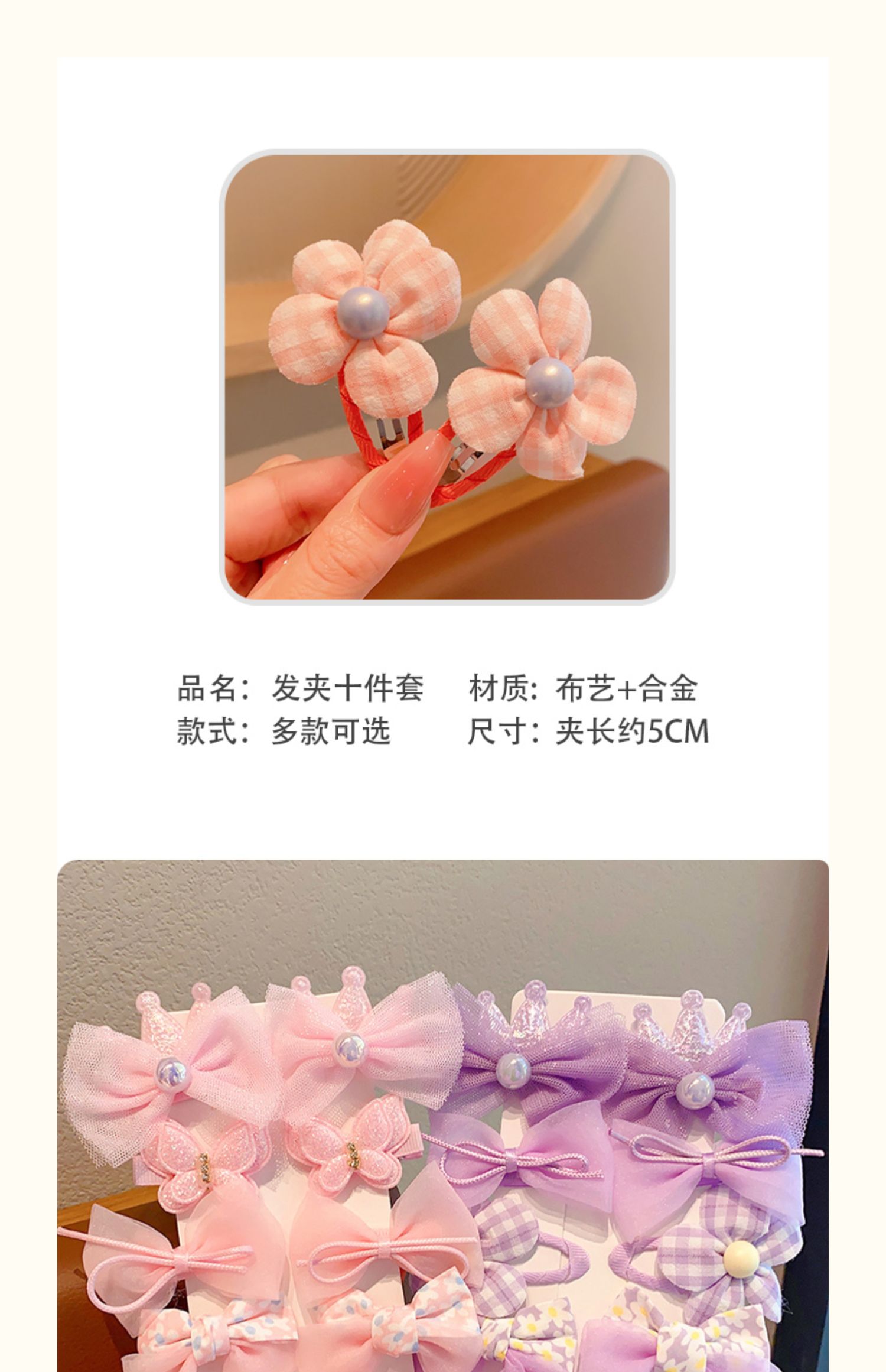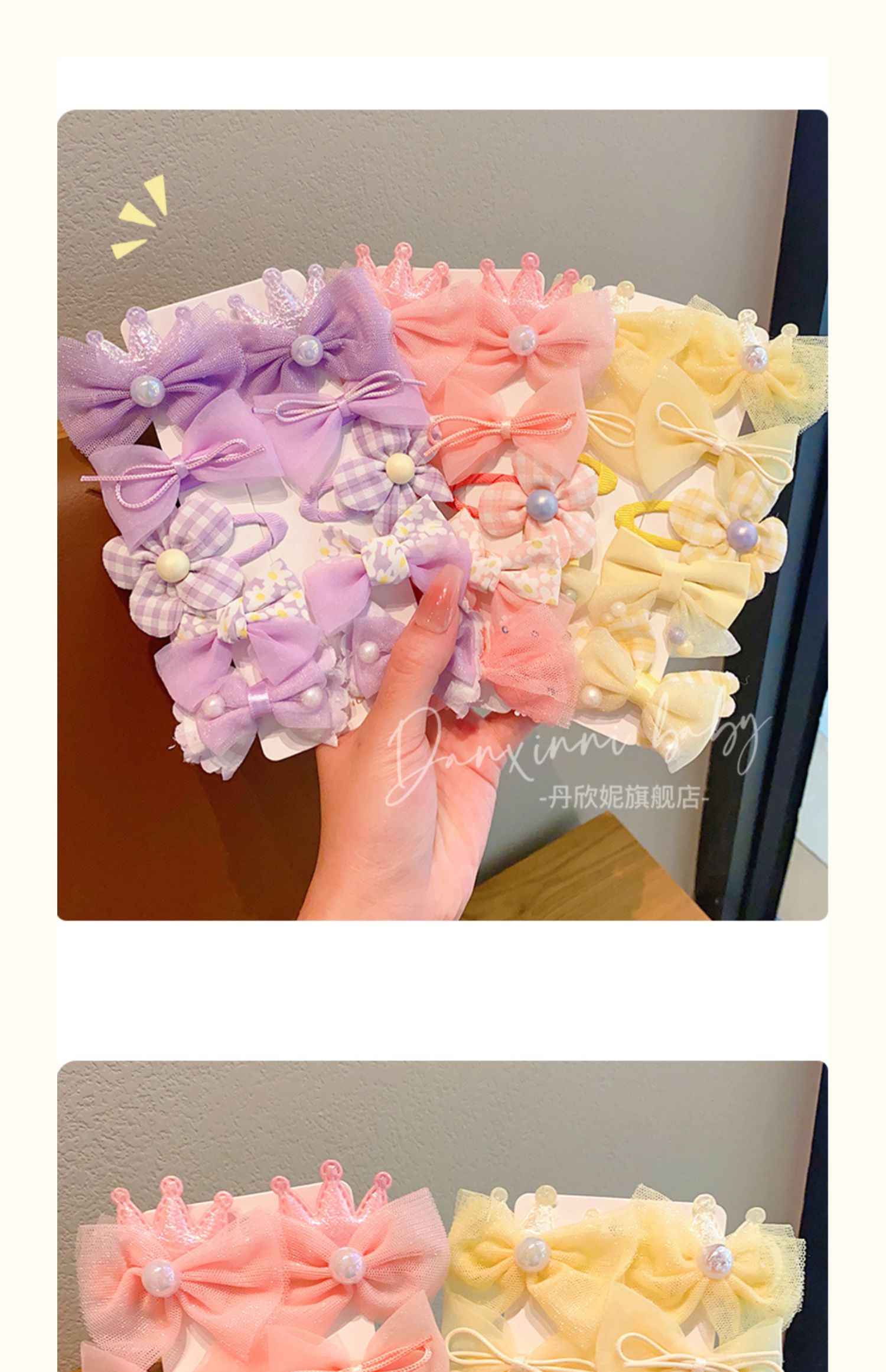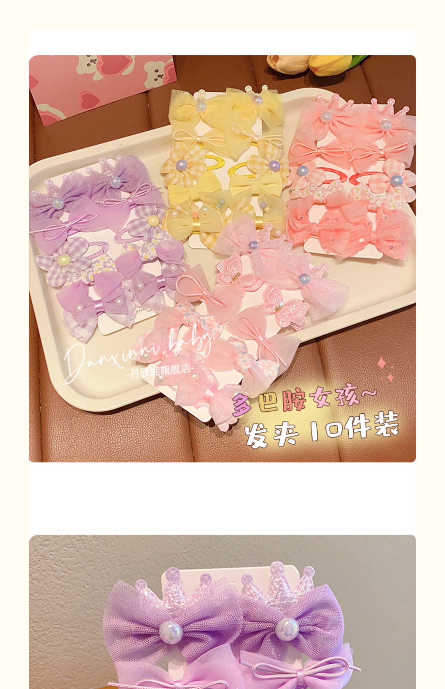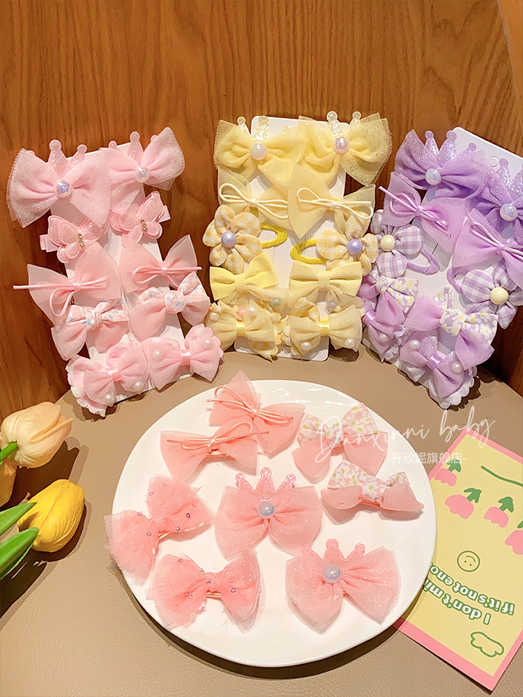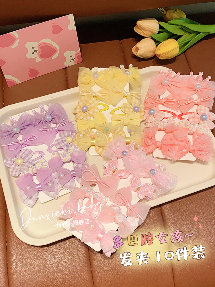 兰兰饰品儿童彩色甜美蝴蝶结发夹套装前额碎发侧边夹发卡女孩公主 English | 投诉