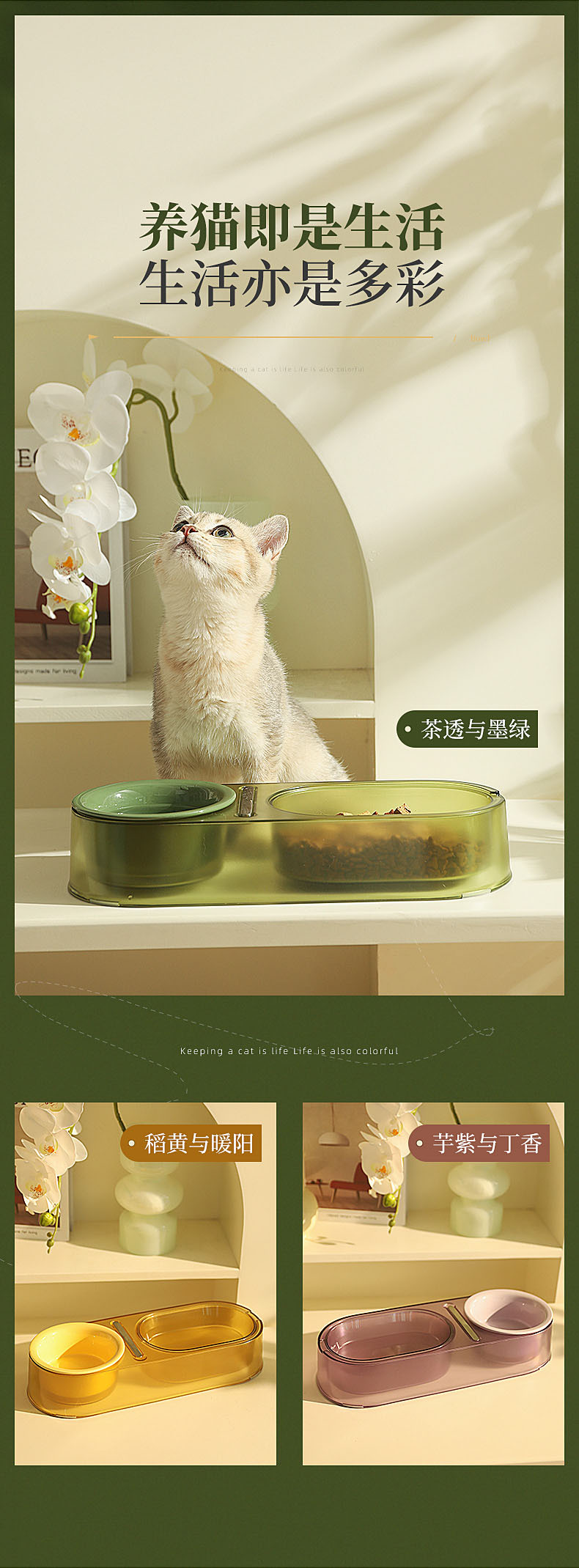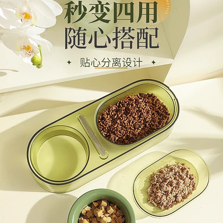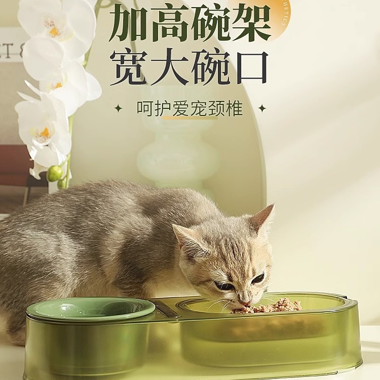 猫碗陶瓷猫食盆双碗猫咪饭碗狗狗碗喂食防打翻猫粮碗水碗宠物用品 投诉