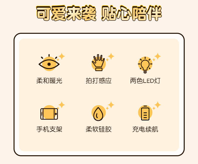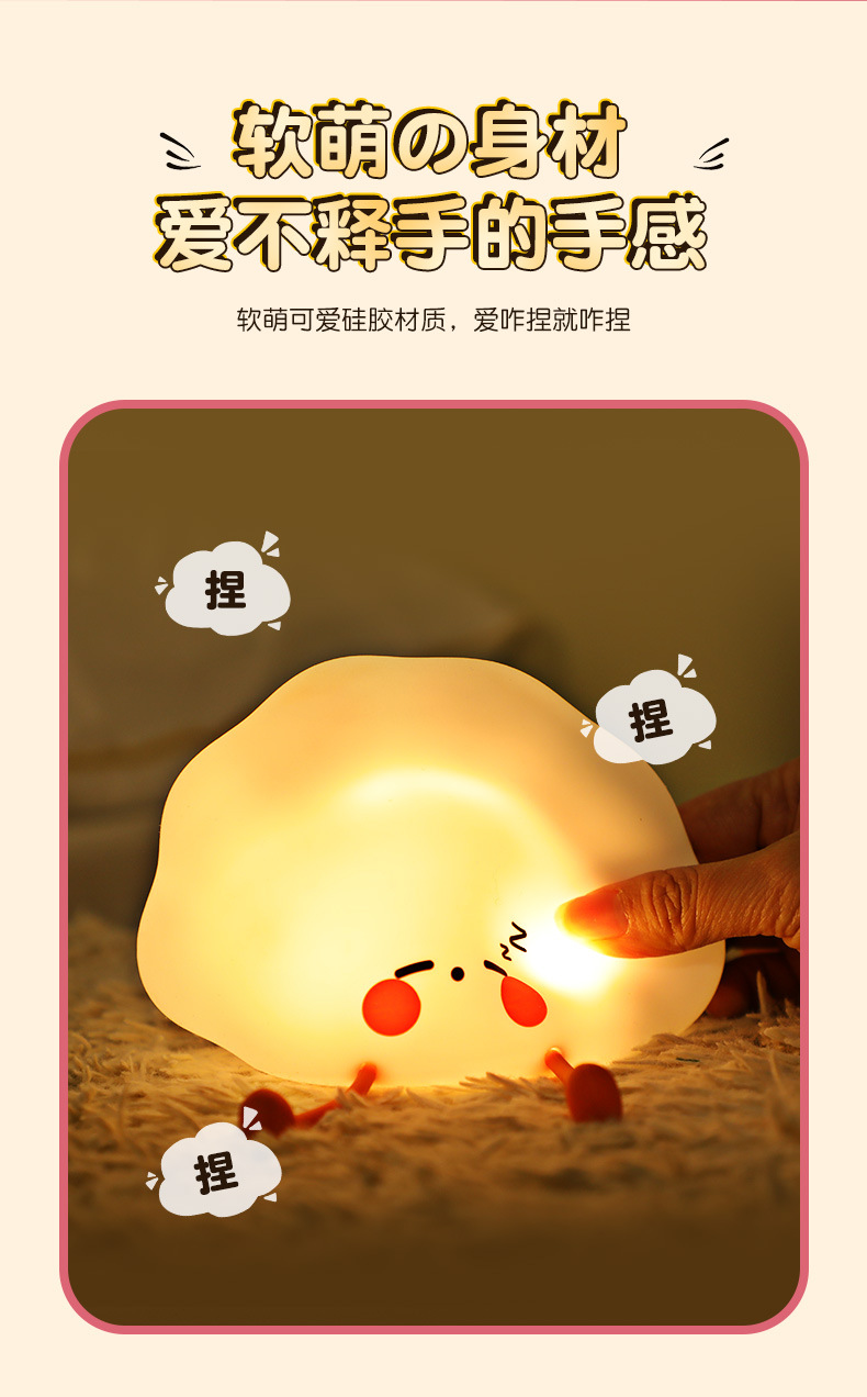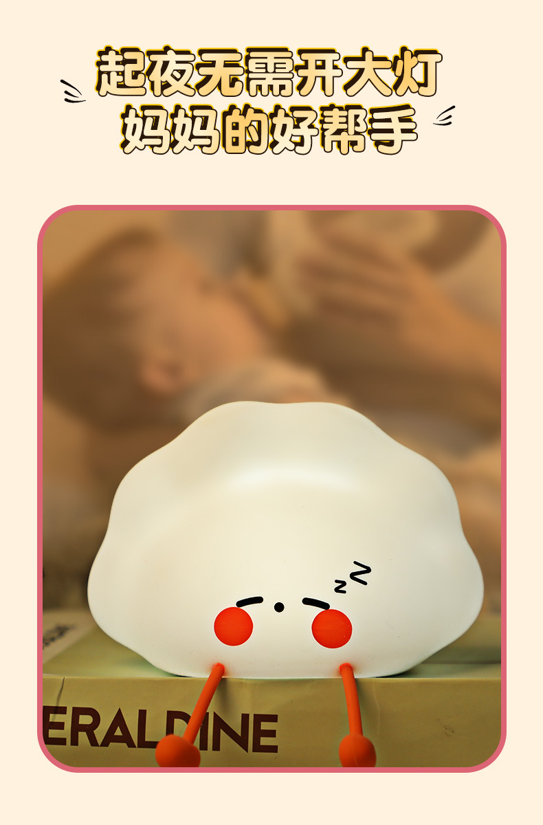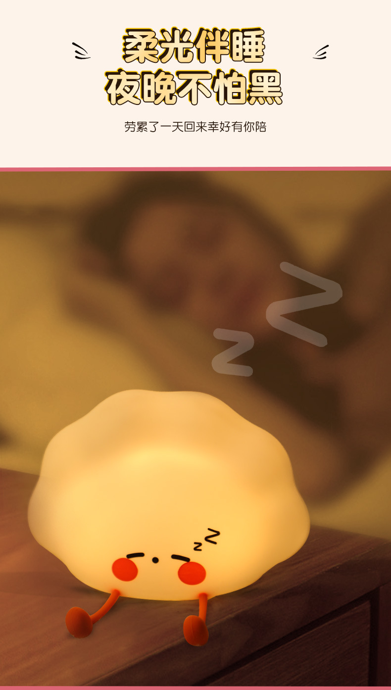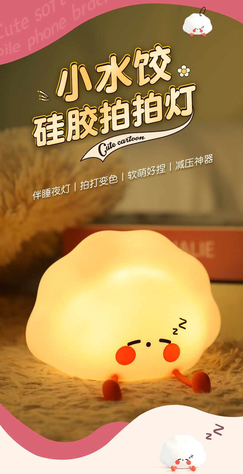 新品小夜灯活动礼品批发儿童起夜睡眠饺子usb充电床头硅胶拍拍灯 English | 投诉