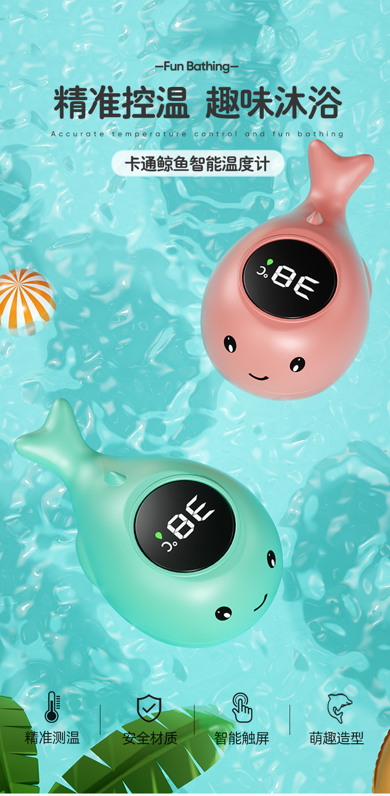 电子水温计鲸鱼绿色(1-90度) ¥2450 9999个可售