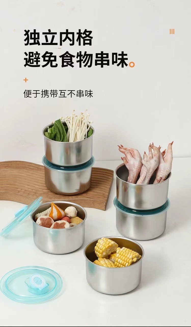 【带盖分装盒】不锈钢厨房配菜盘食材分装盒野餐盒水果收纳保鲜盒