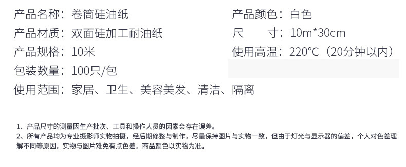 | 无锯齿白色30*5米英文盒硅油纸 | ¥198 | 100000个可售 |