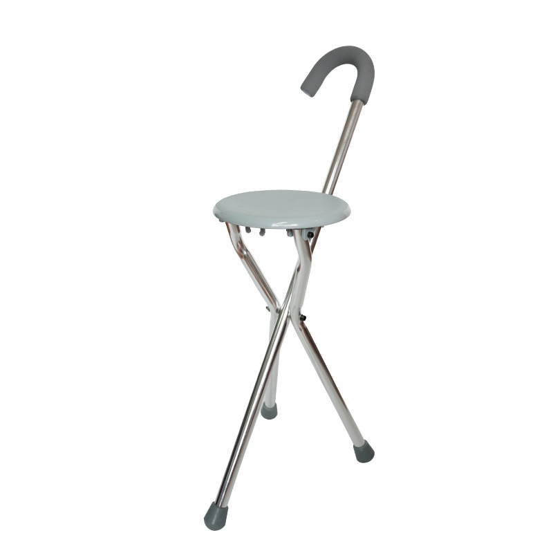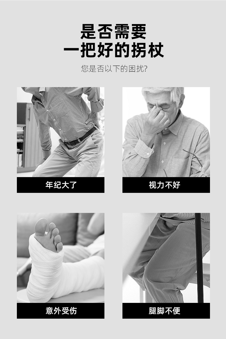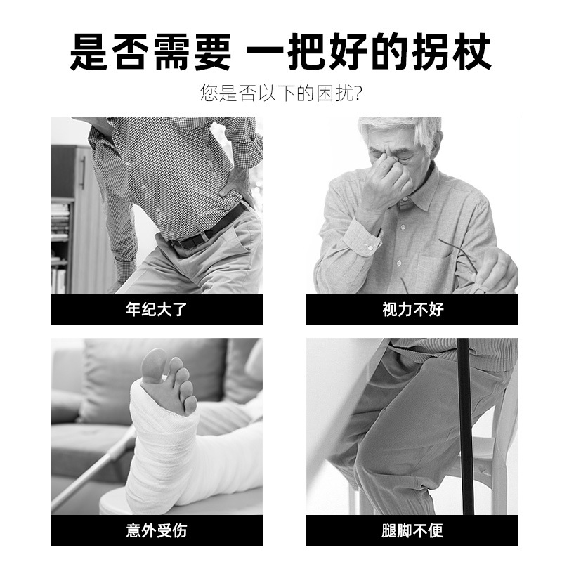 老人四脚拐杖凳子镁合金带坐板手杖凳轻便可调折叠多功能拐棍手杖