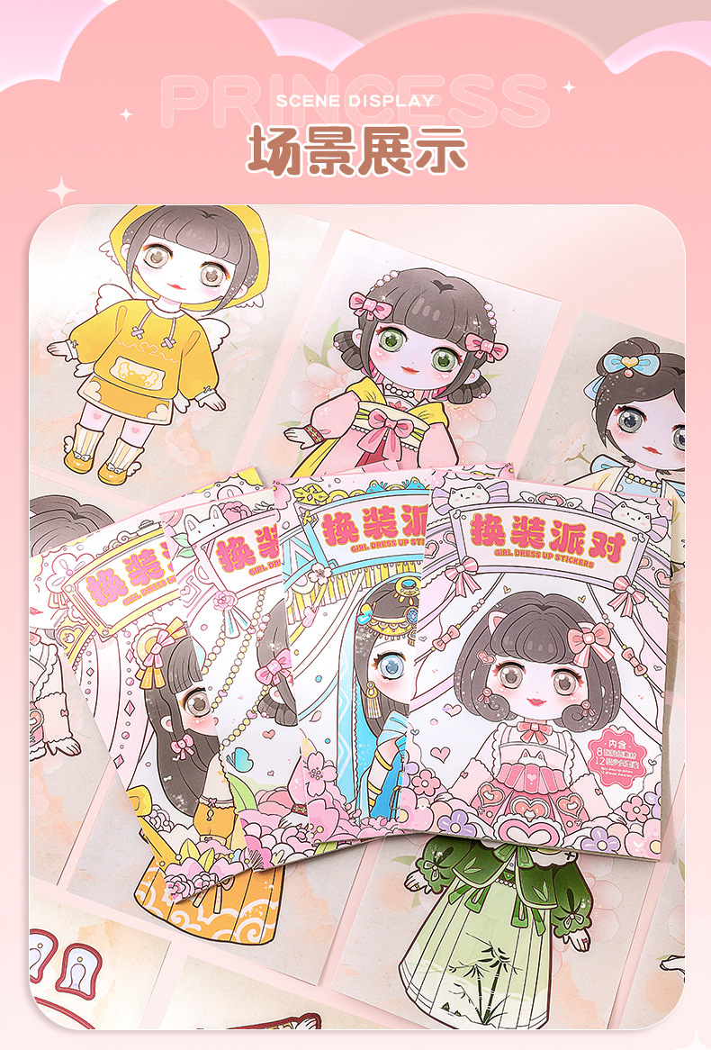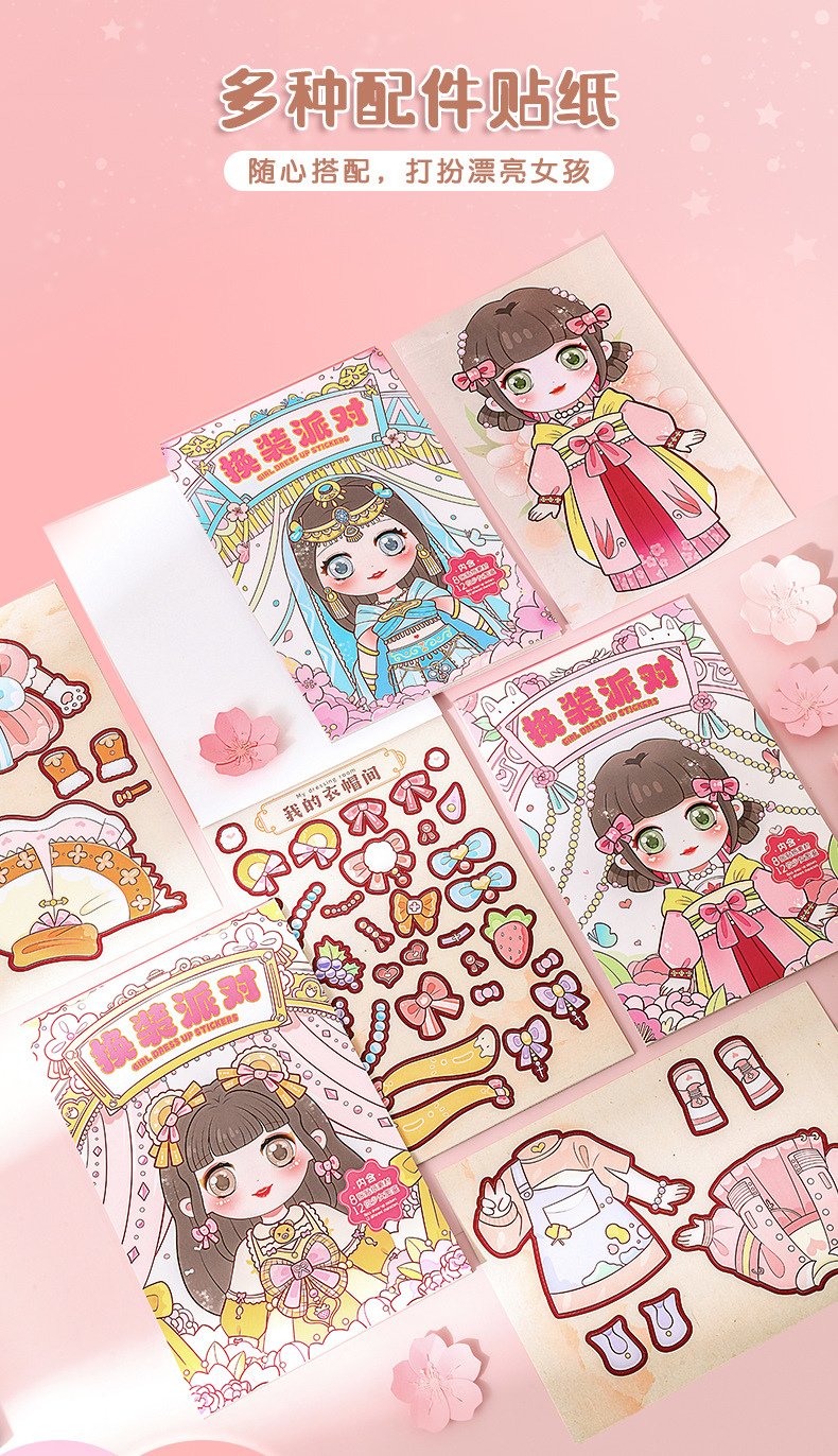 公主换装贴纸换装派对可爱女孩换妆秀儿童diy化妆贴纸书女童礼物