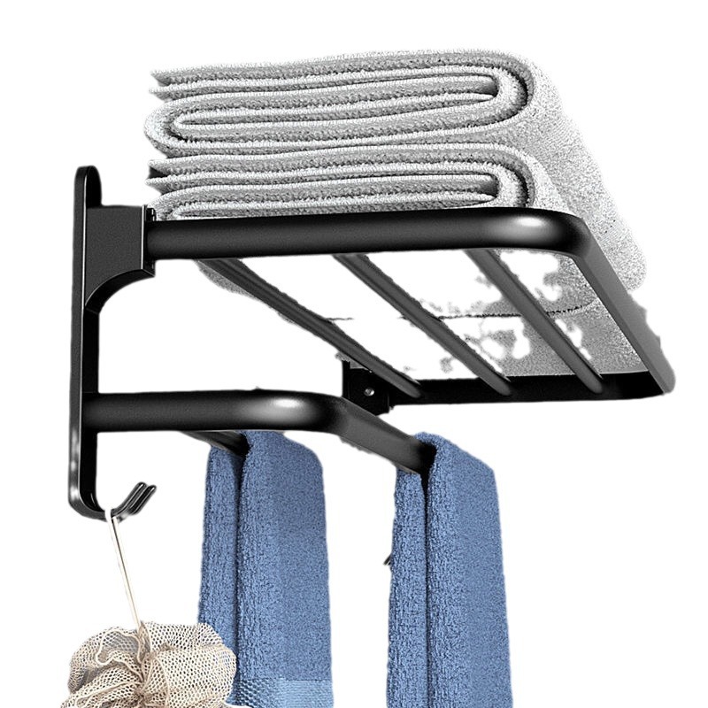 新款太空铝毛巾架 双层折叠收纳挂架 60/50/40cm浴室免打孔浴巾架