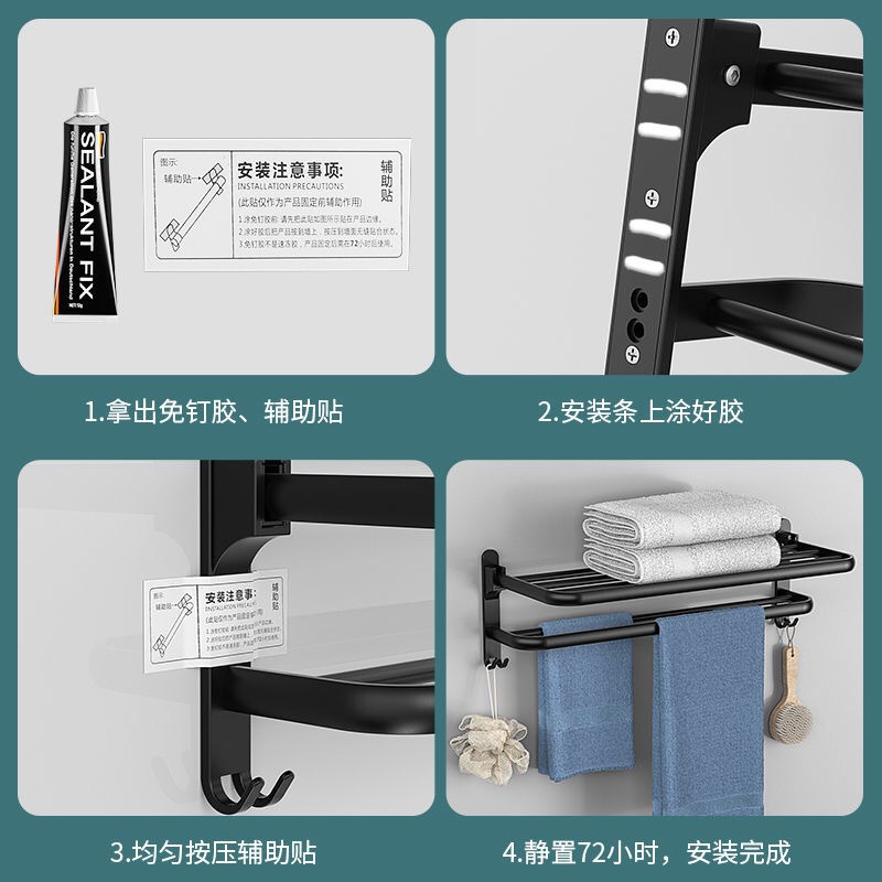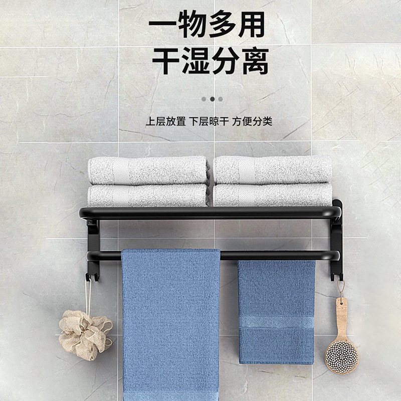 新款太空铝毛巾架 双层折叠收纳挂架 60/50/40cm浴室免打孔浴巾架 投诉
