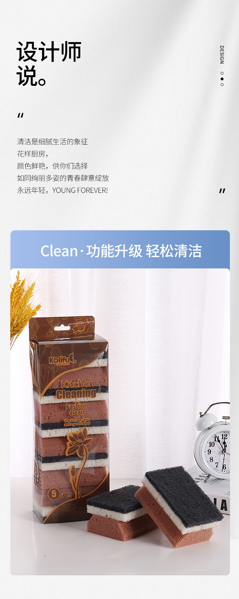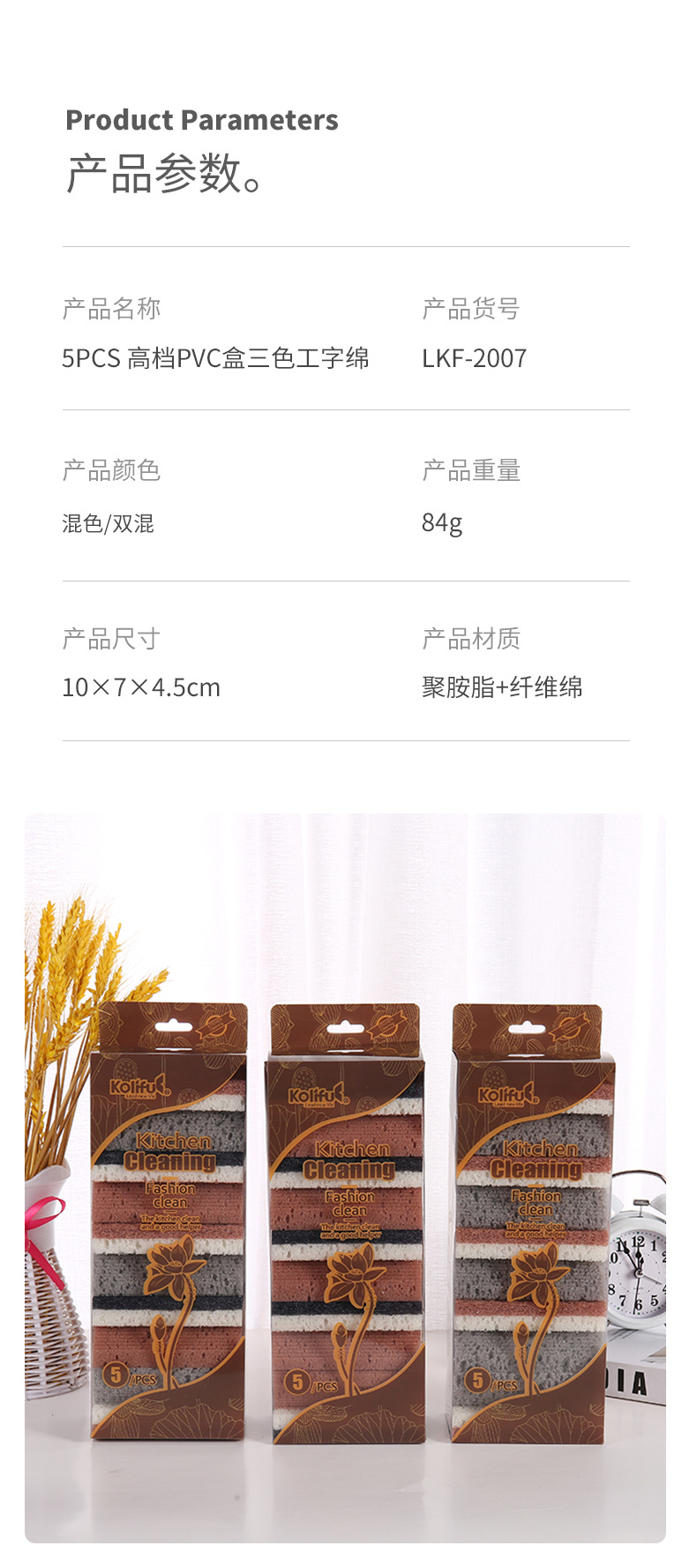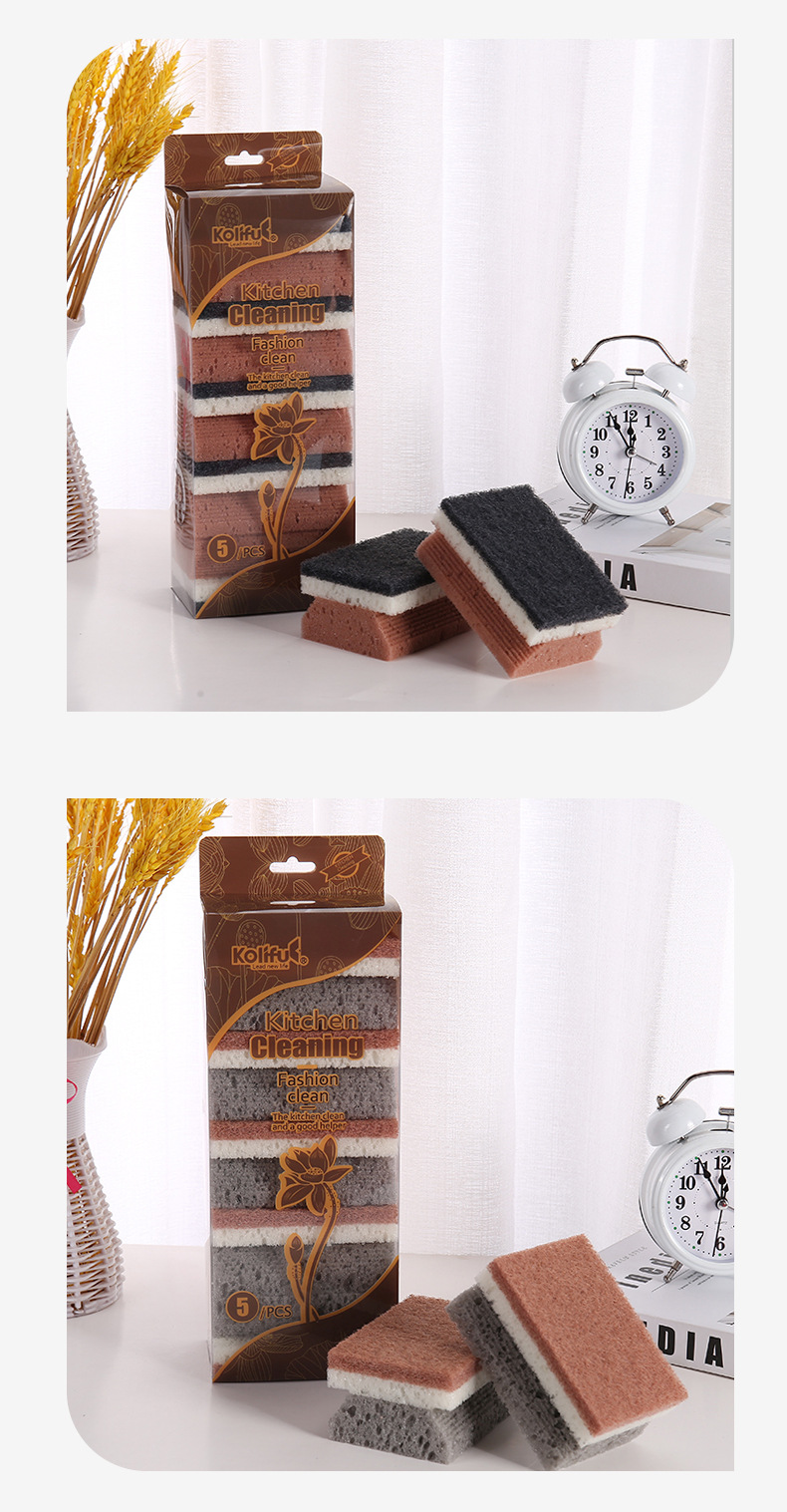 品牌: 康俐肤 材质: 聚胺脂+纤维绵 是否进口: 否 适用对象: 锅/碗 贸易属性: 内贸+外贸 重量: 84g 外箱规格: 77×48×61 箱装数量: 5片装120包 产地: 义乌 产品上市时间: 2023 重量: 1.0 kg/套