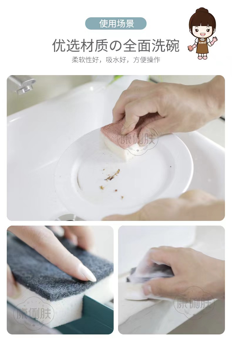 肤三色洗碗海绵擦浴室厨房家务清洁百洁布海绵块海绵魔力擦洗碗布 English | 投诉