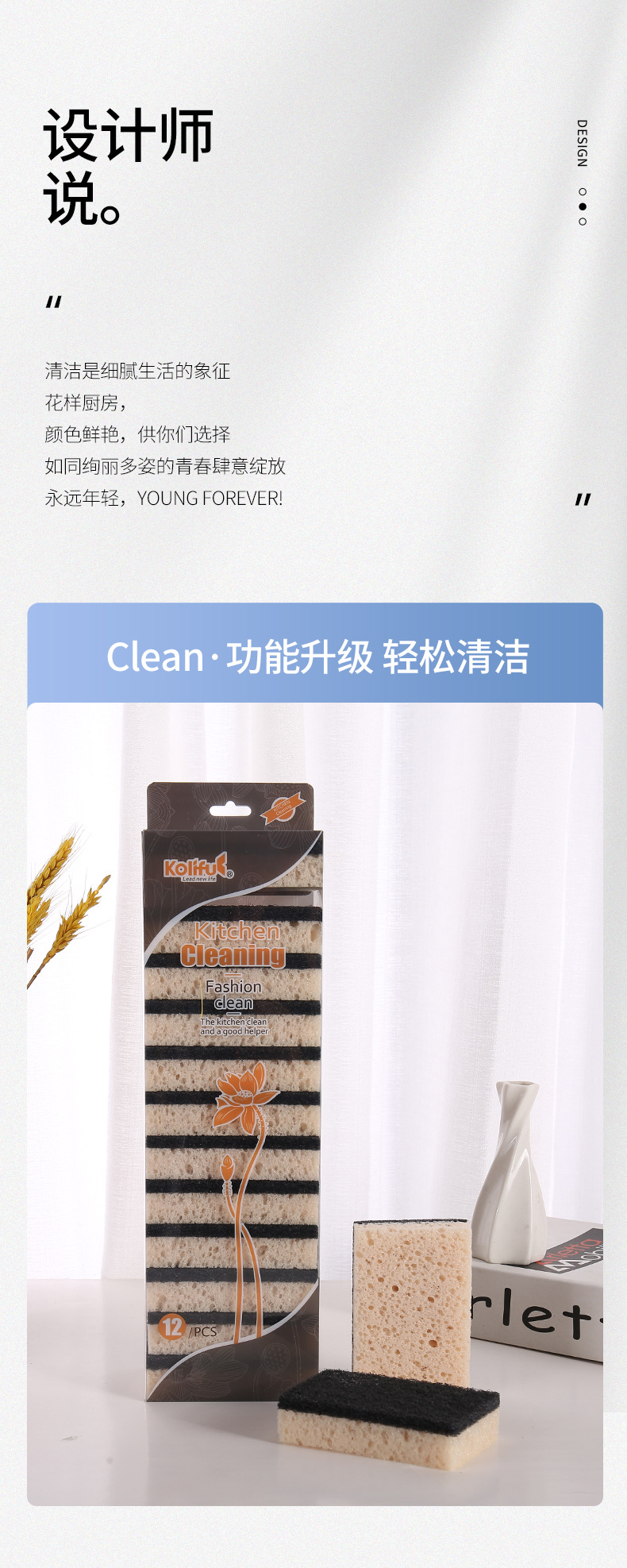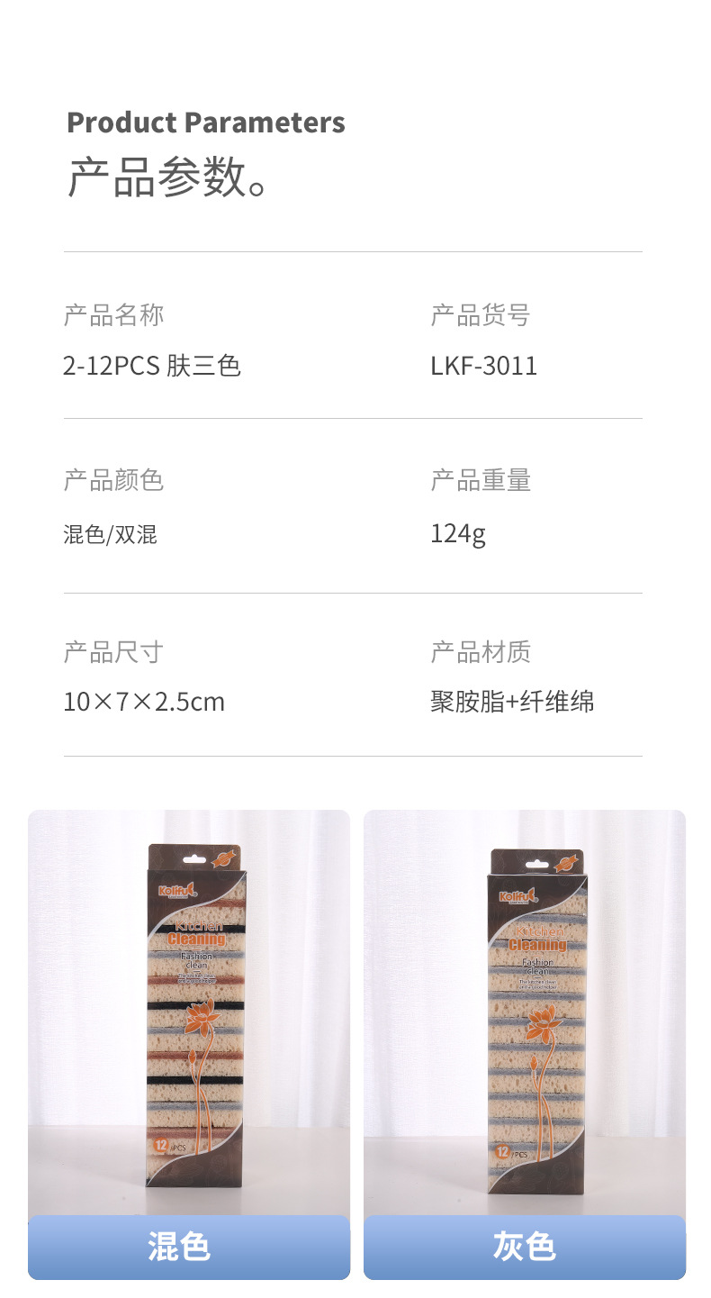 品牌: 康俐肤 材质: 聚胺脂+纤维绵 是否进口: 否 适用对象: 锅/碗 贸易属性: 内贸+外贸 重量: 124G 箱装数量: 220 产地: 义乌 产品上市时间: 2023 货号: LKF-3011 重量: 1.0 kg/套