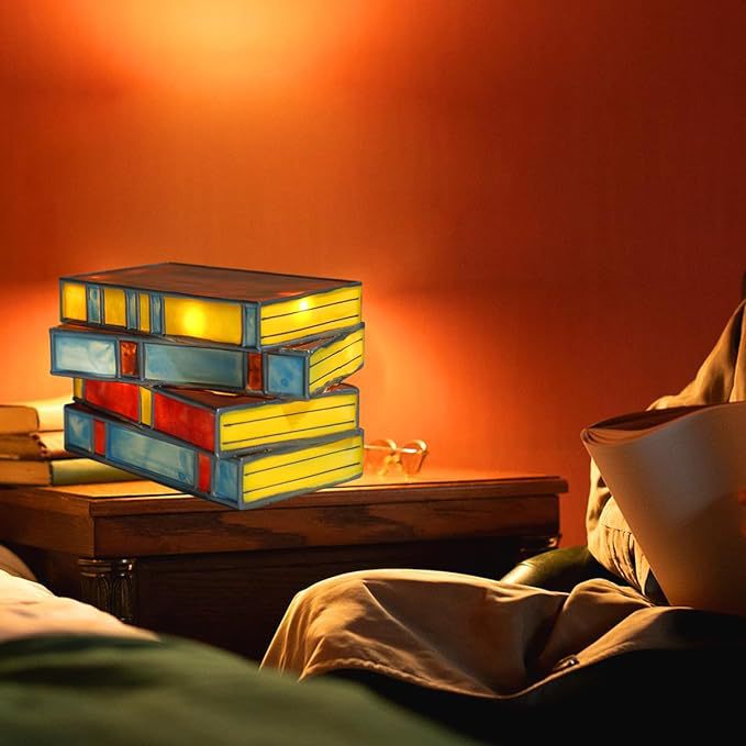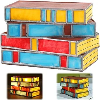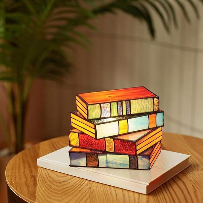 Stained Glass Stacked Bo oks Lam 塑料彩色叠书灯 书本台灯摆件 English | 投诉