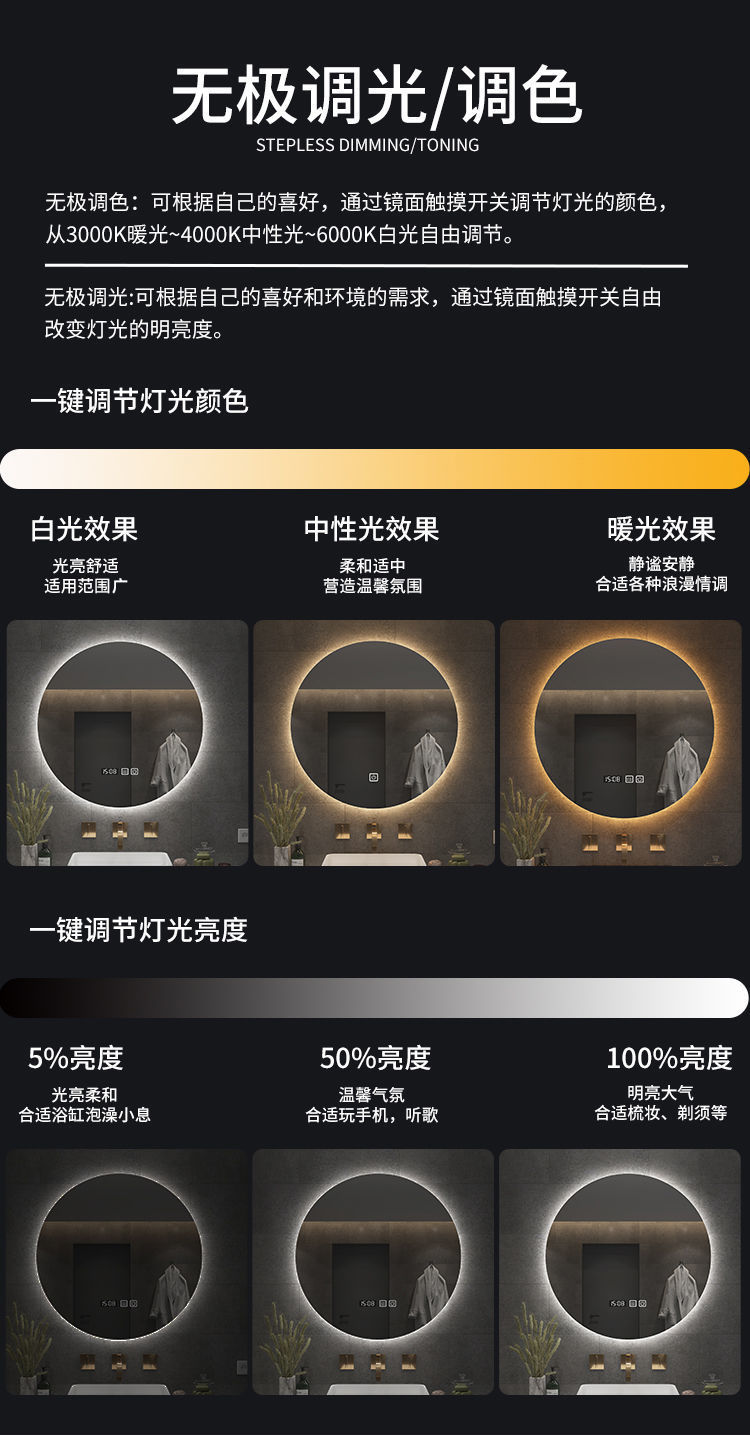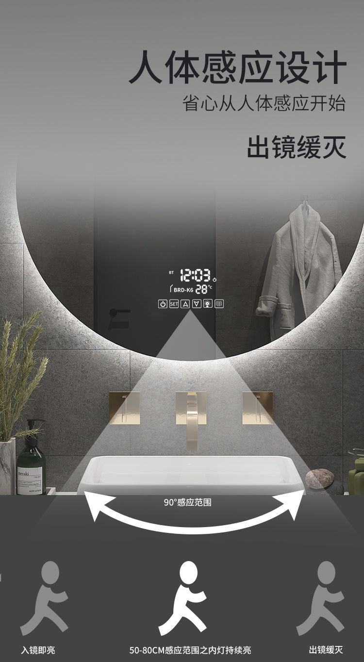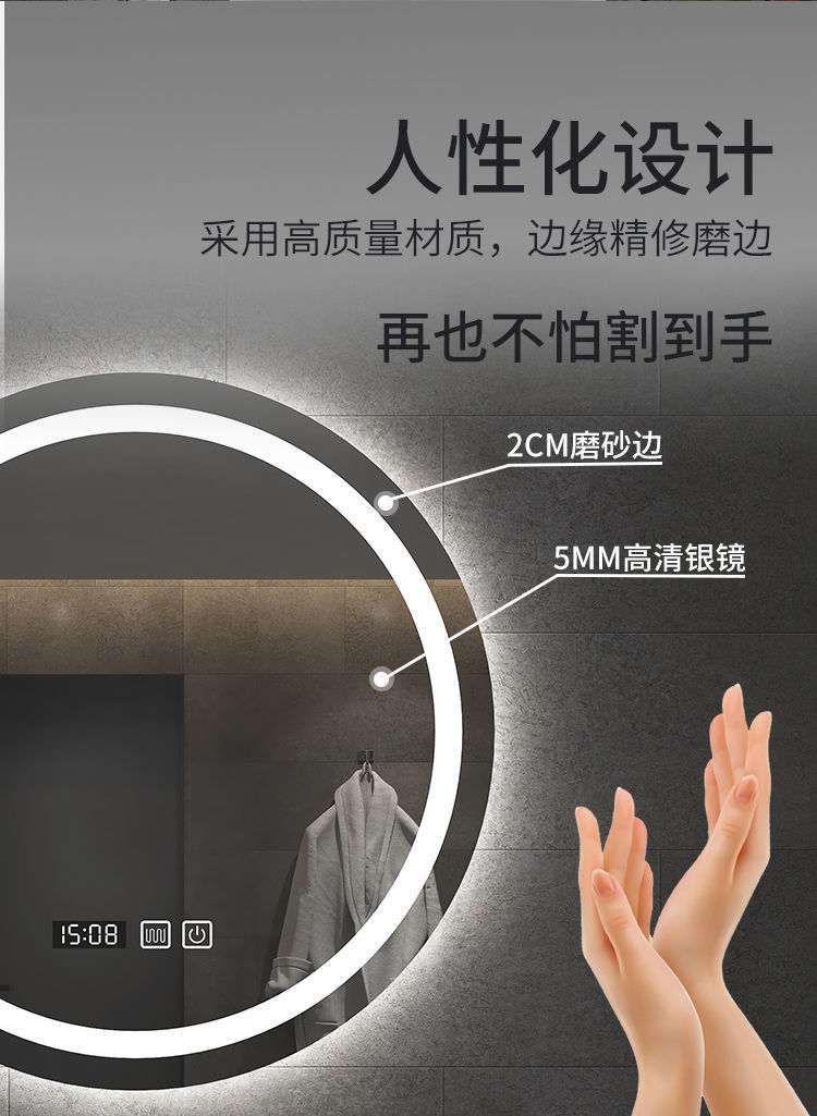 智能镜子led卫生间化妆带灯可连蓝牙听歌挂墙浴室发光镜防雾圆形