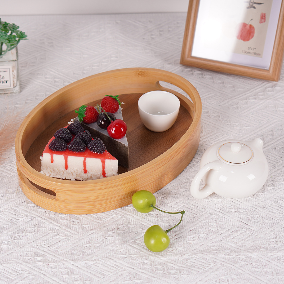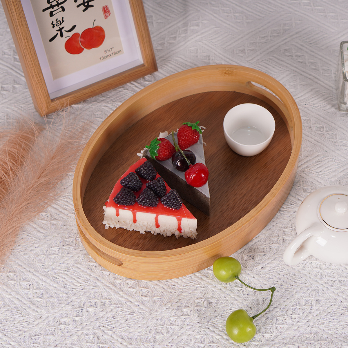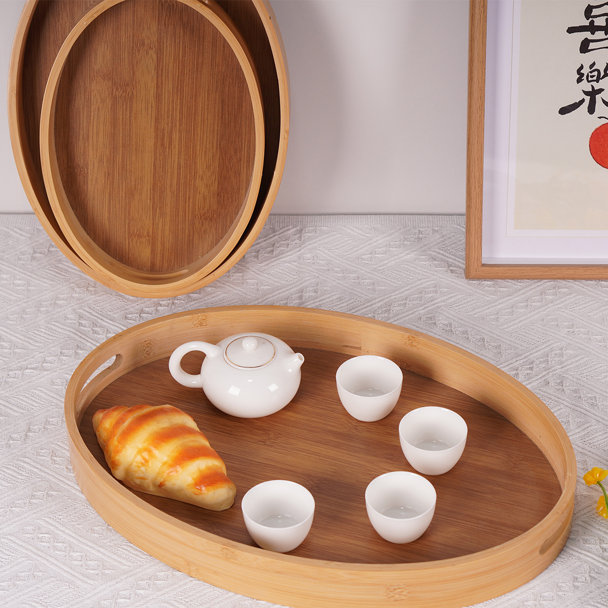 椭圆竹制托盘日式楠竹收纳盘面包盘茶盘镂空带把手甜点茶具收纳盘 English | 投诉
