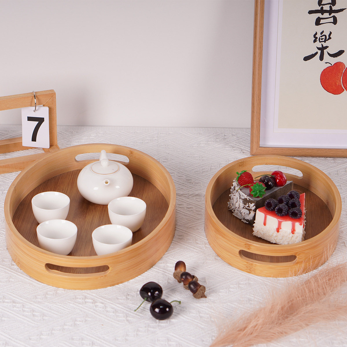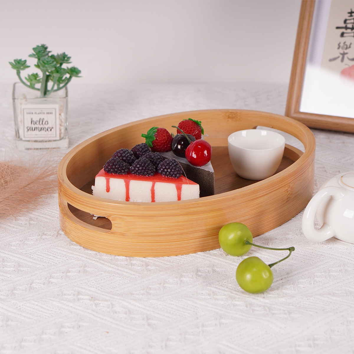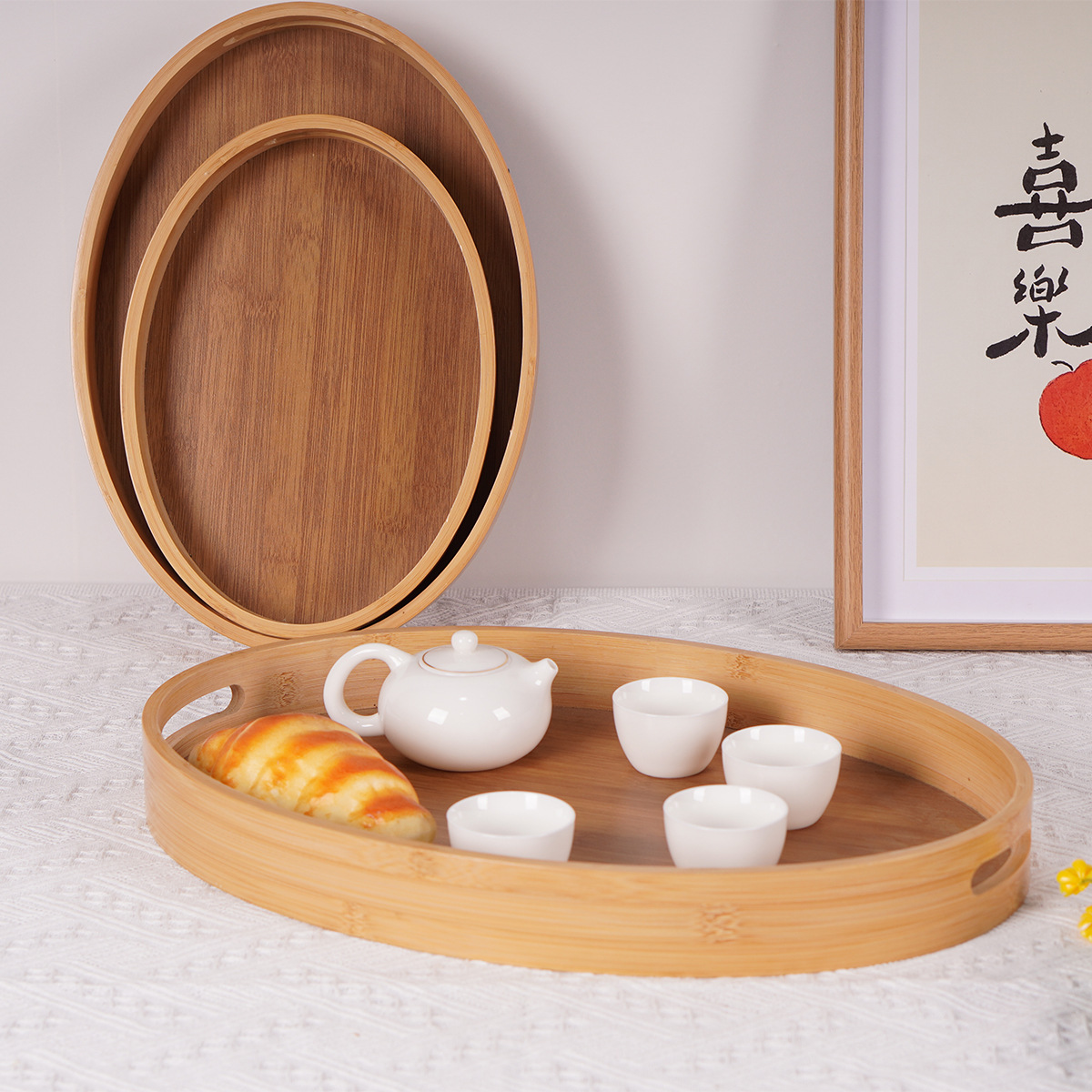 椭圆竹制托盘日式楠竹收纳盘面包盘茶盘镂空带把手甜点茶具收纳盘 English | 投诉