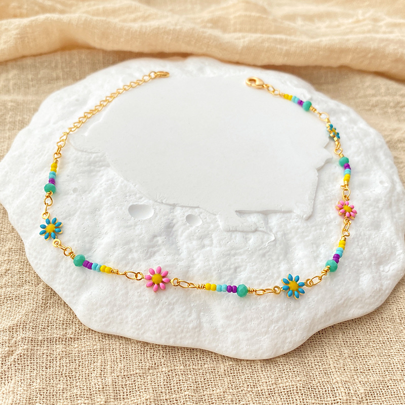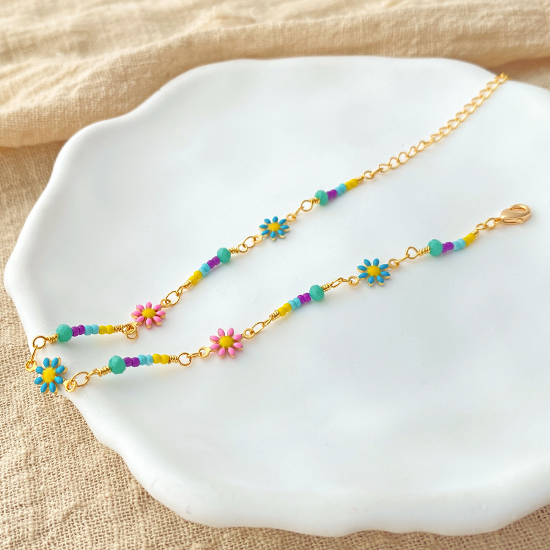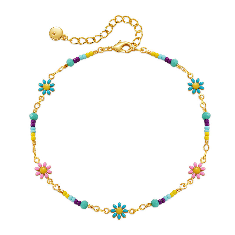 跨境花朵脚链滴油工艺复古足链串珠波西米亚风小清新小雏菊脚饰