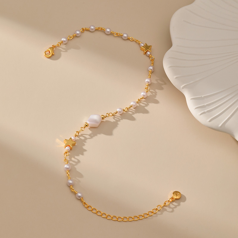跨境新品气质珍珠脚饰铜镀18K真金保色细款优雅小清新ins风足链