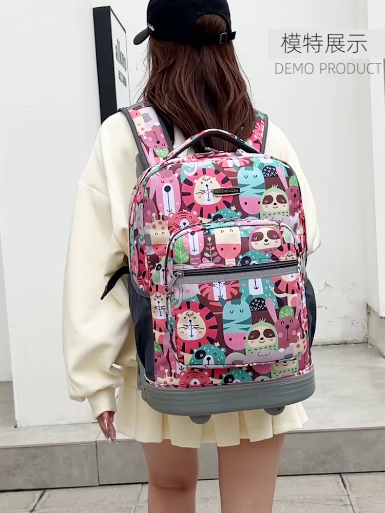 威盛达中小学生拉杆书包背拉两用减负护脊双肩背包大容量书包