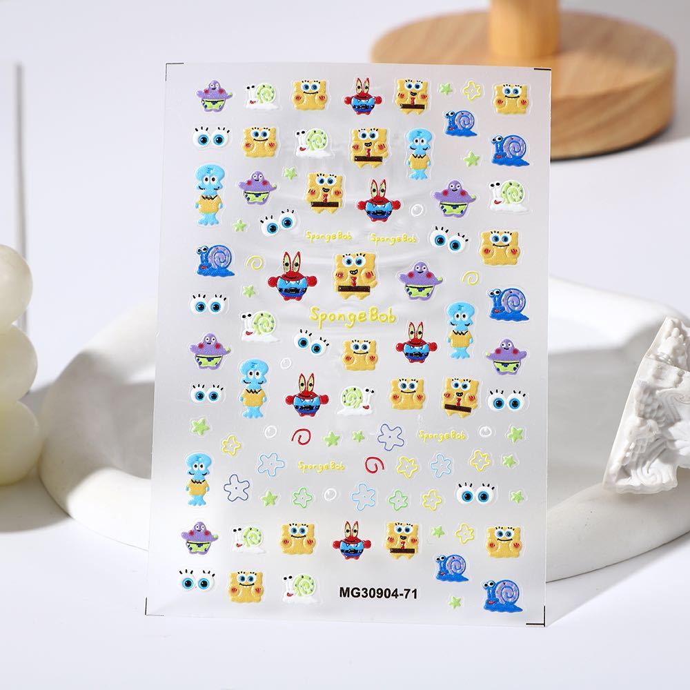 玫瑰美甲浮雕卡通海绵宝宝美甲贴纸背胶指甲 投诉