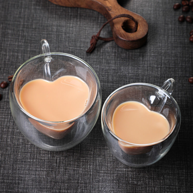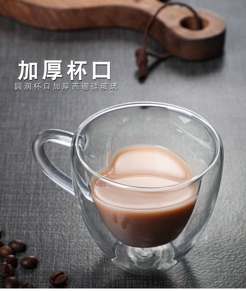 带把爱心玻璃杯耐高温咖啡杯创意家用双层心形高颜值茶水杯子 English | 投诉