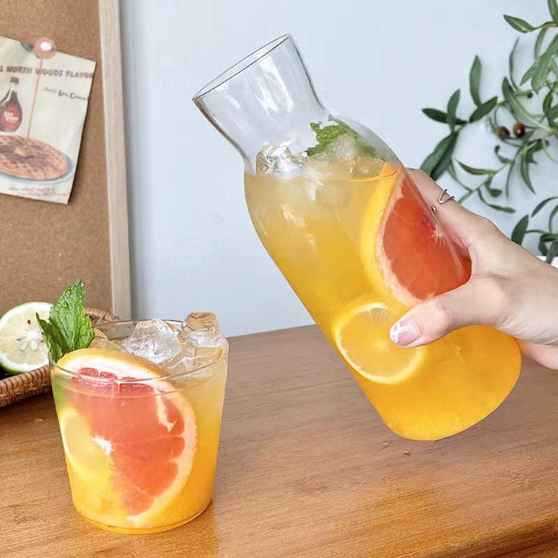 一人饮小容量凉水壶 带杯套装透明玻璃冷水壶 水杯套装果汁壶