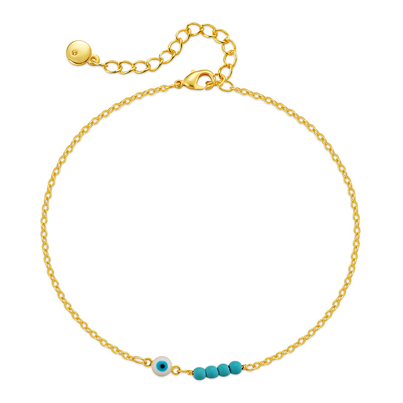 外贸恶魔之眼造型细款o字链脚饰铜镀18K真金欧美风松石串珠脚饰