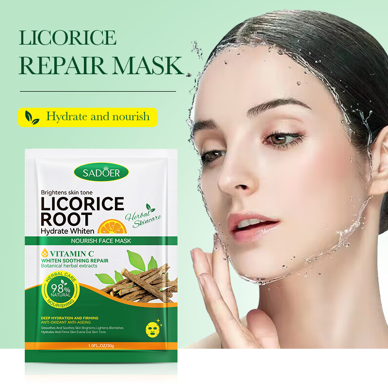 全英文面膜 SADOER甘草VC润肤水润美白滋养面膜 跨境外贸工厂直销