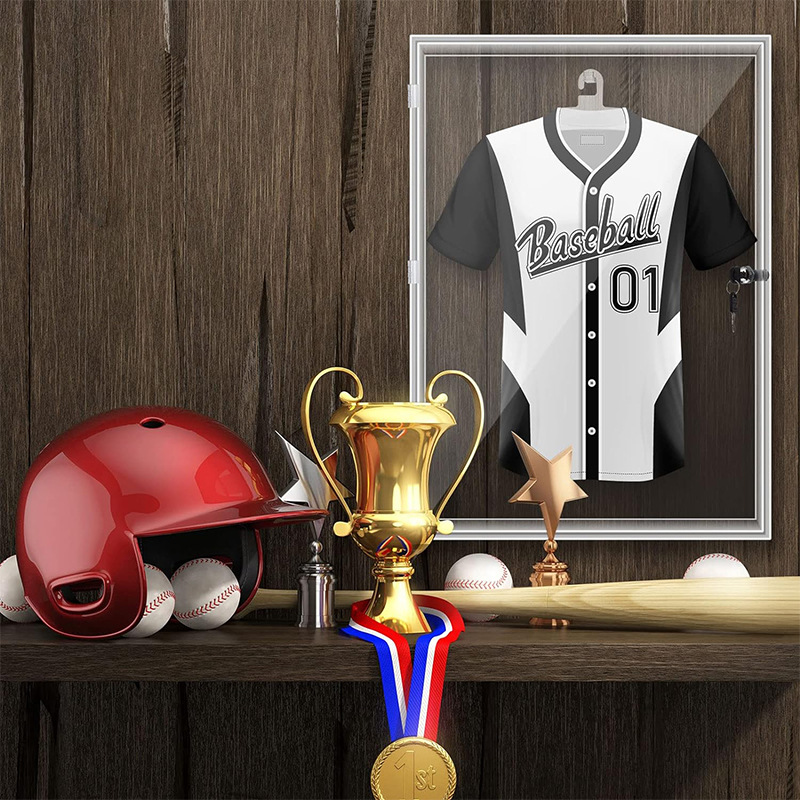 厂家定制有机玻璃橄榄球足球壁挂收纳展示亚克力棒球球衣展示架盒