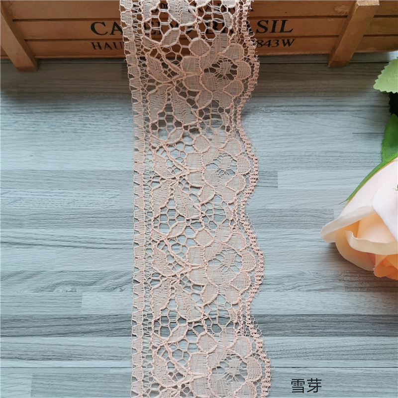 此款弹力蕾丝用途广泛:可适用于婚纱、裙子、鞋帽、床上用品、装饰、家纺、睡衣、手套、窗帘、娃娃衣配件,以及工艺品,各类服饰等等。