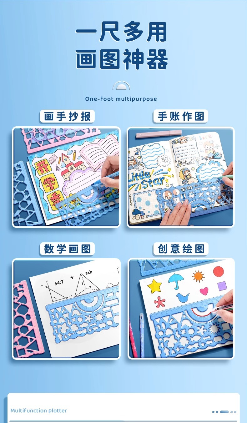 魔幻万花尺套装学生绘画手抄报模板绘图多功能画画用百变直尺批发
