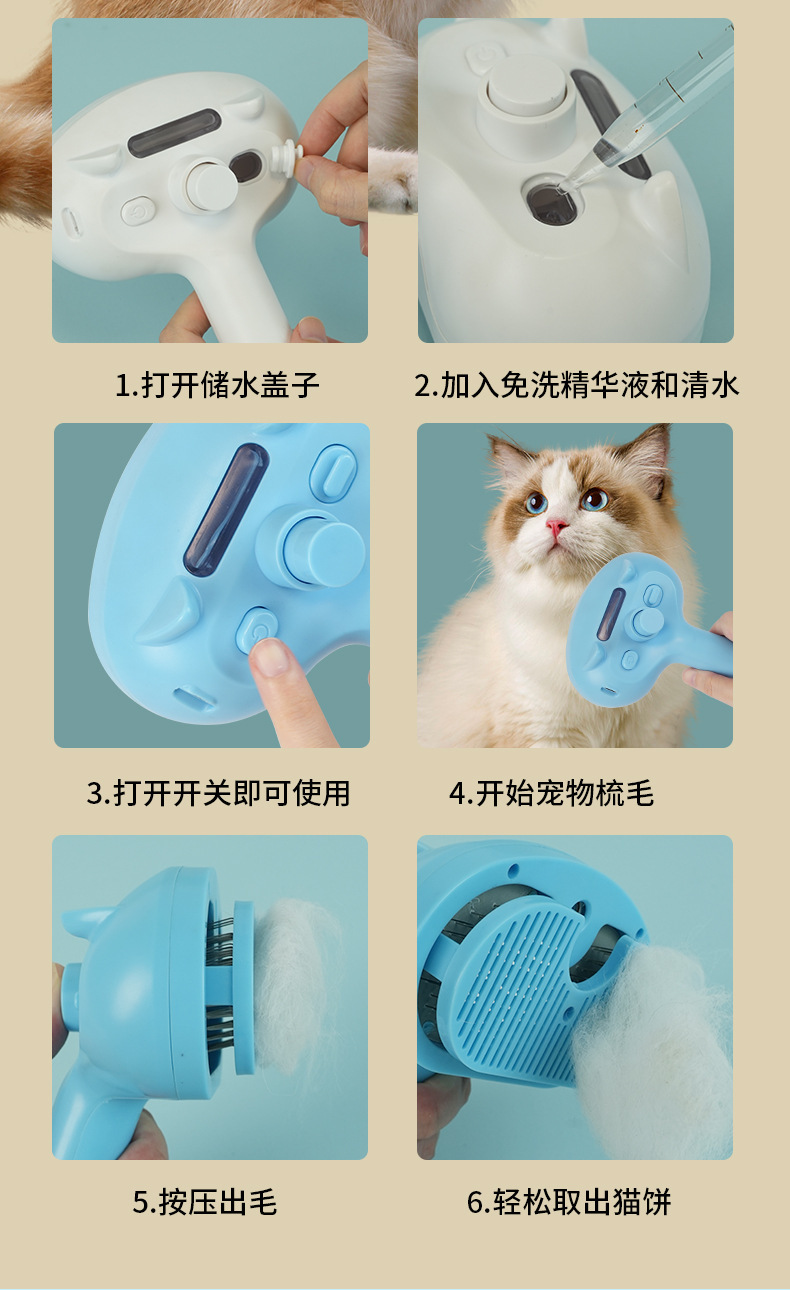 猫梳子猫咪梳毛专用去浮毛梳猫毛清理器狗宠物电动喷雾按摩梳 English | 投诉