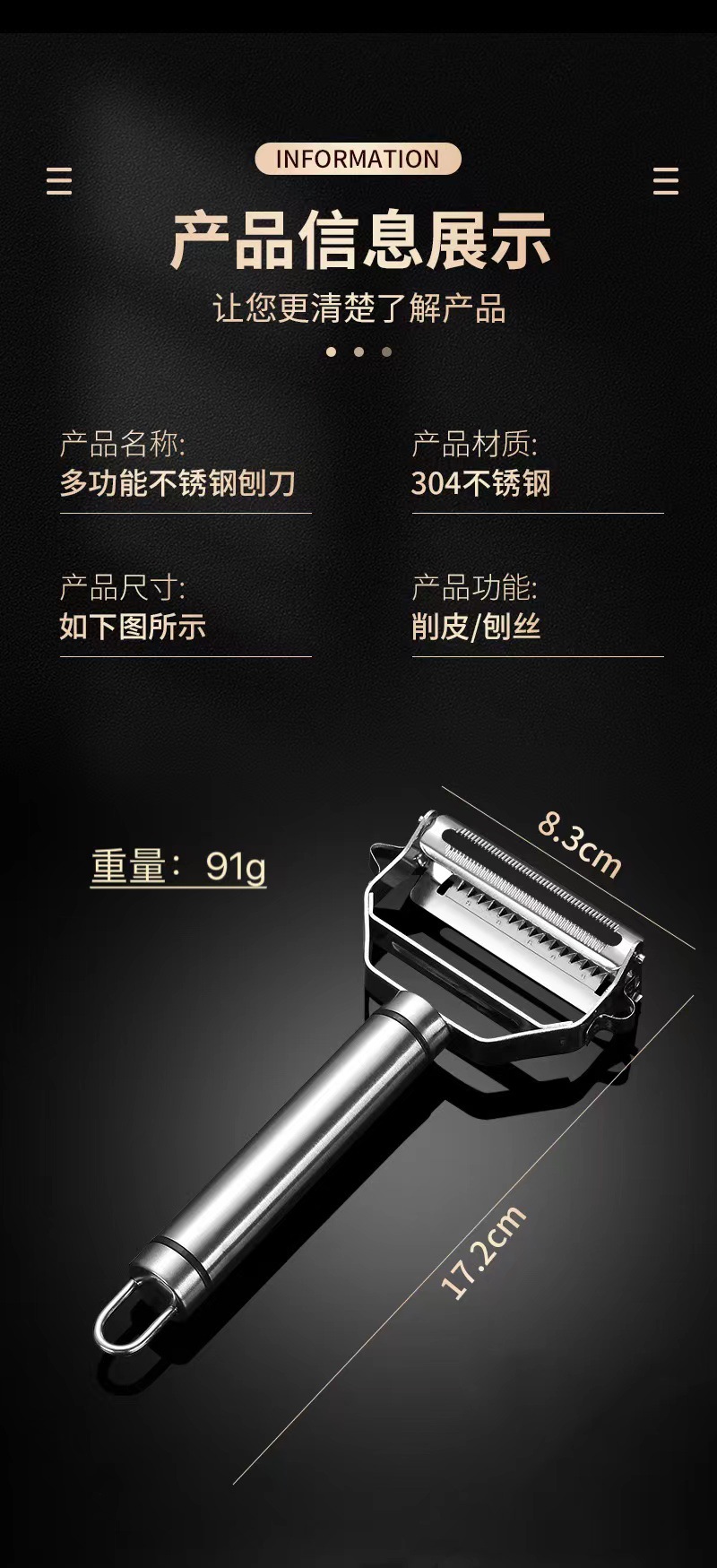 工厂304加厚不锈钢瓜刨去皮刀削皮刀瓜果刨子削皮器厨房小工具 English | 投诉