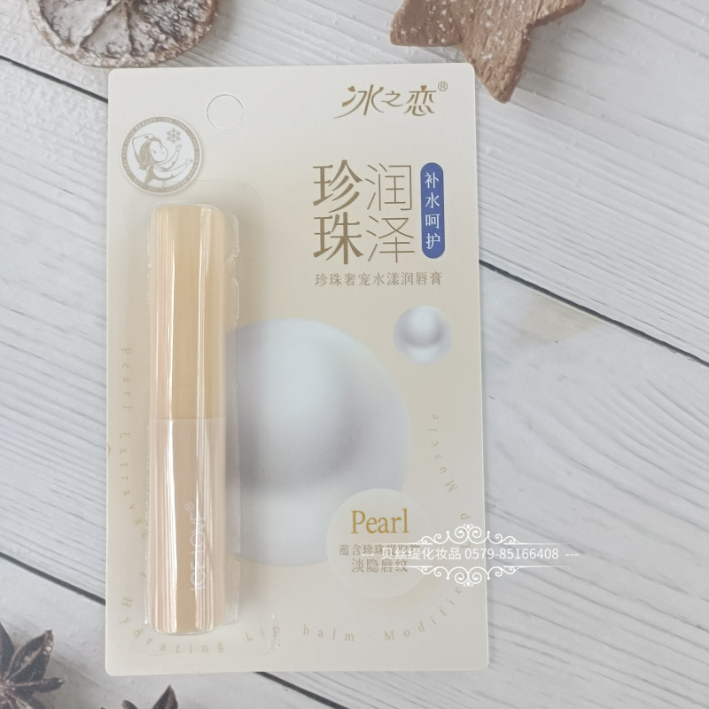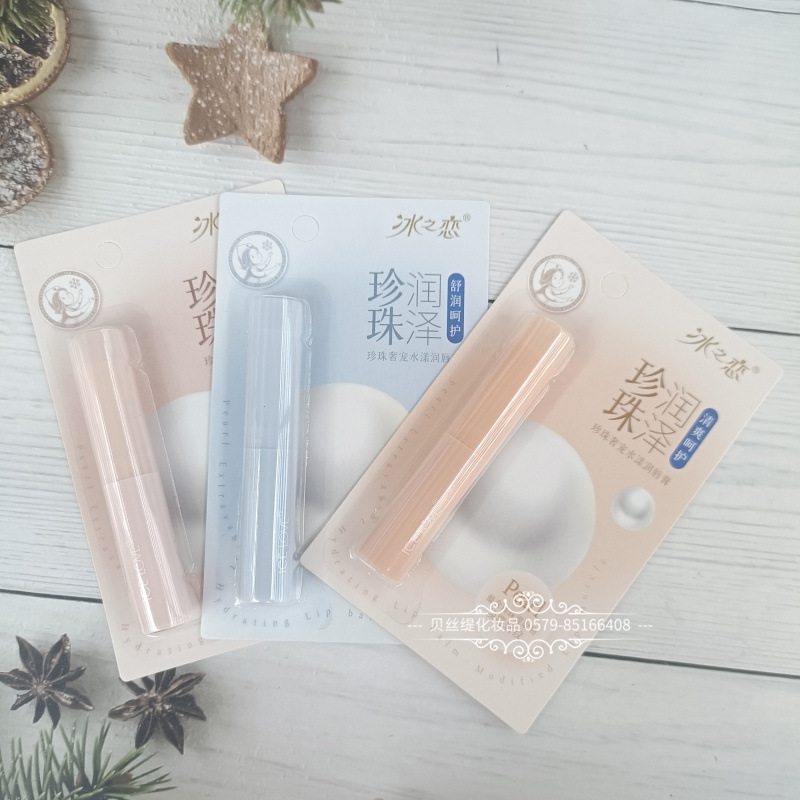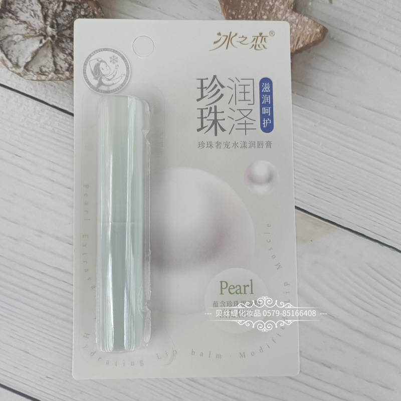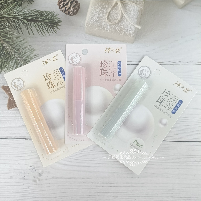 2024年冰之恋珍珠奢宠水漾润唇膏纸卡片包装女士润唇膏唇油口白