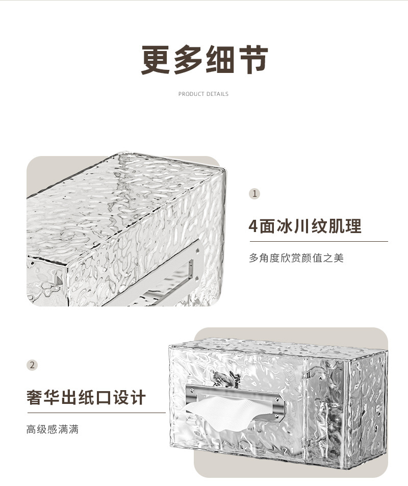冰川纹客厅纸巾盒轻奢款卧室创意抽纸盒壁挂式卫生间洗脸巾收纳盒 投诉