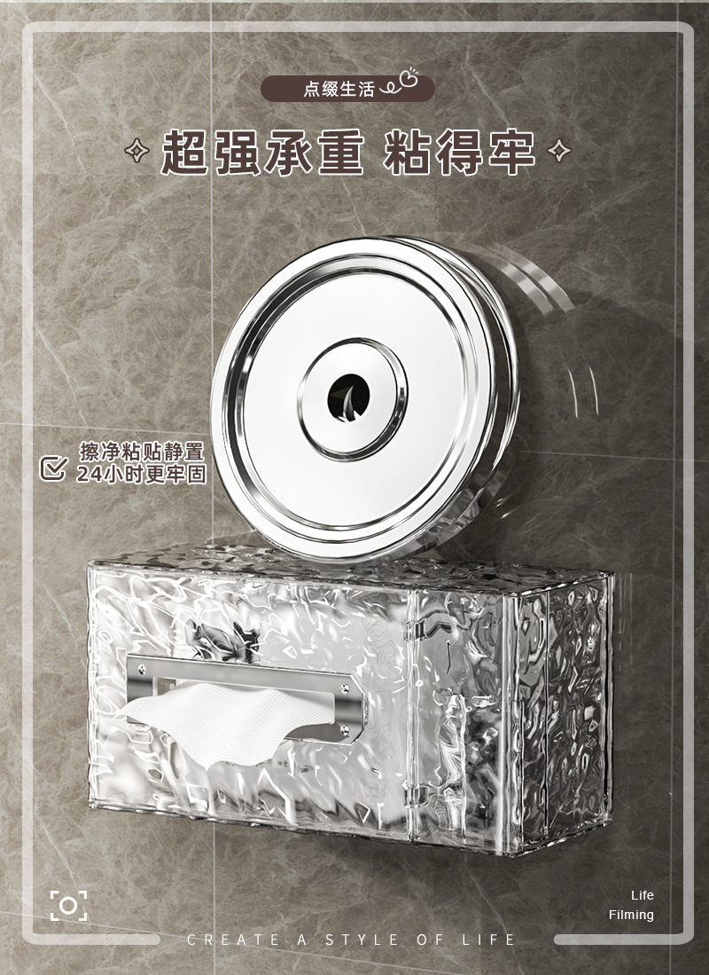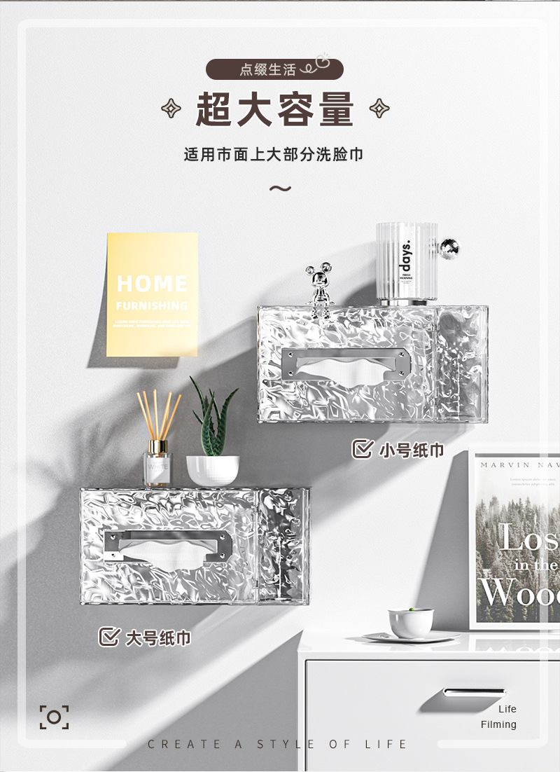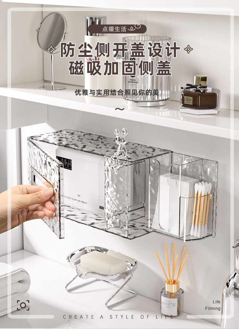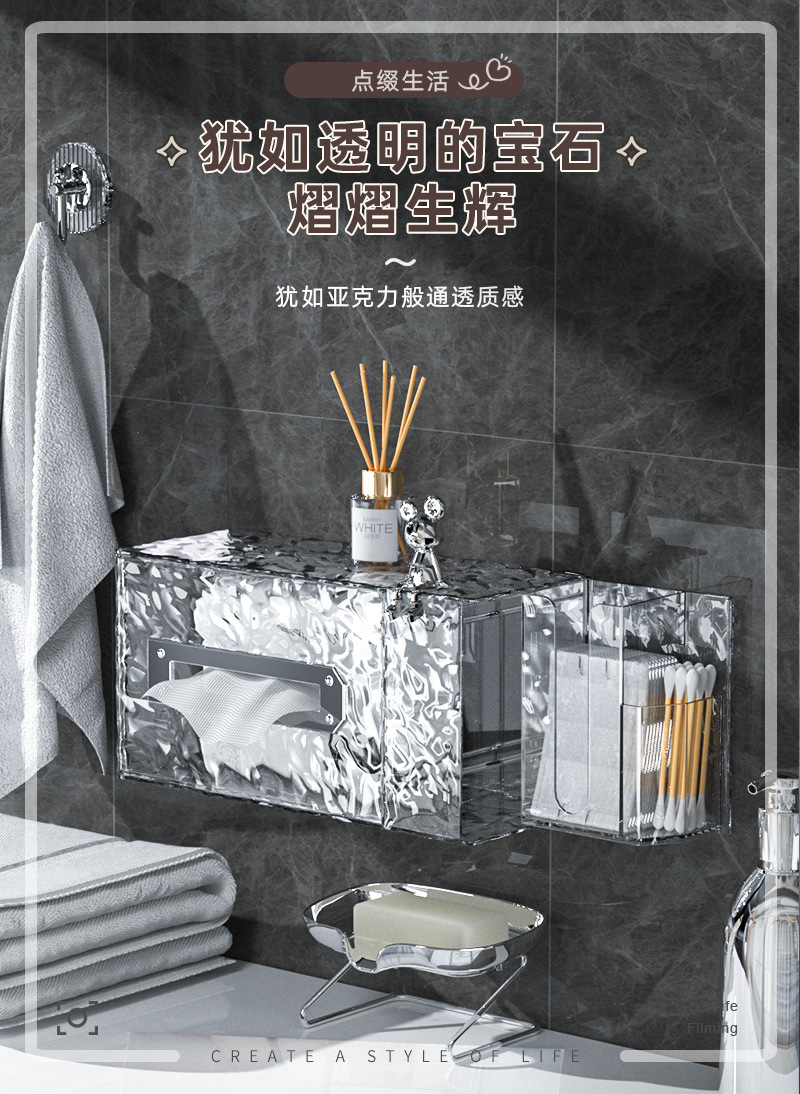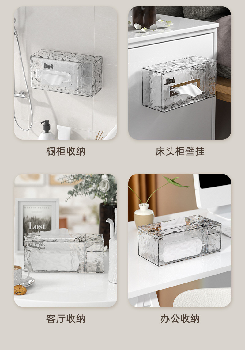 冰川纹客厅纸巾盒轻奢款卧室创意抽纸盒壁挂式卫生间洗脸巾收纳盒