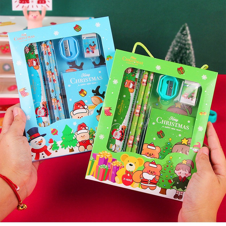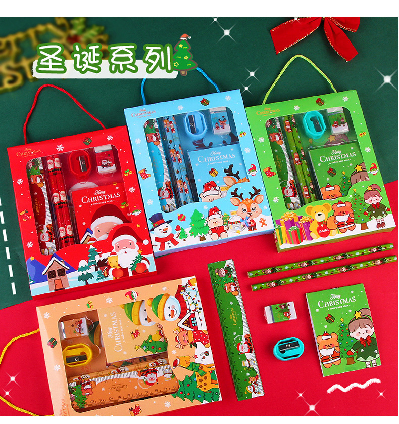 圣诞礼品文具套装礼盒幼儿园奖品礼品文具6件套圣诞节新年礼物批