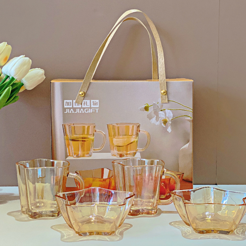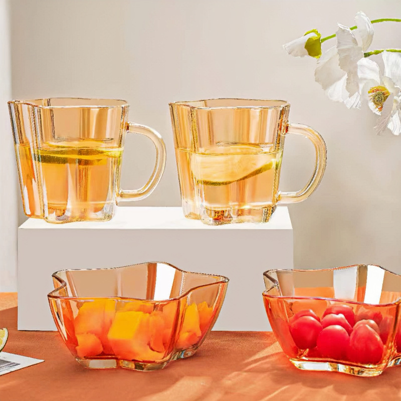 三餐四季,有家有你,琥珀色玻璃杯碗,晶莹剔透有质感,独特的色调赋予餐桌低调奢华的魅力。