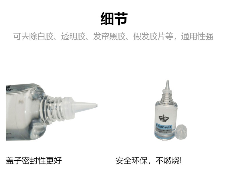 使用方法:将去胶液滴在假发的双面胶或者胶水处,等待10-30秒,