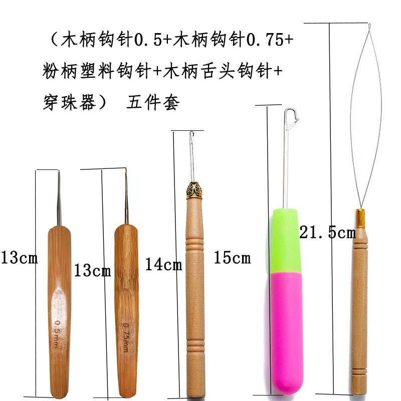 假发专用木柄塑料钩针穿珠器接发工具 厂家直销 批发 钩针五件套 投诉