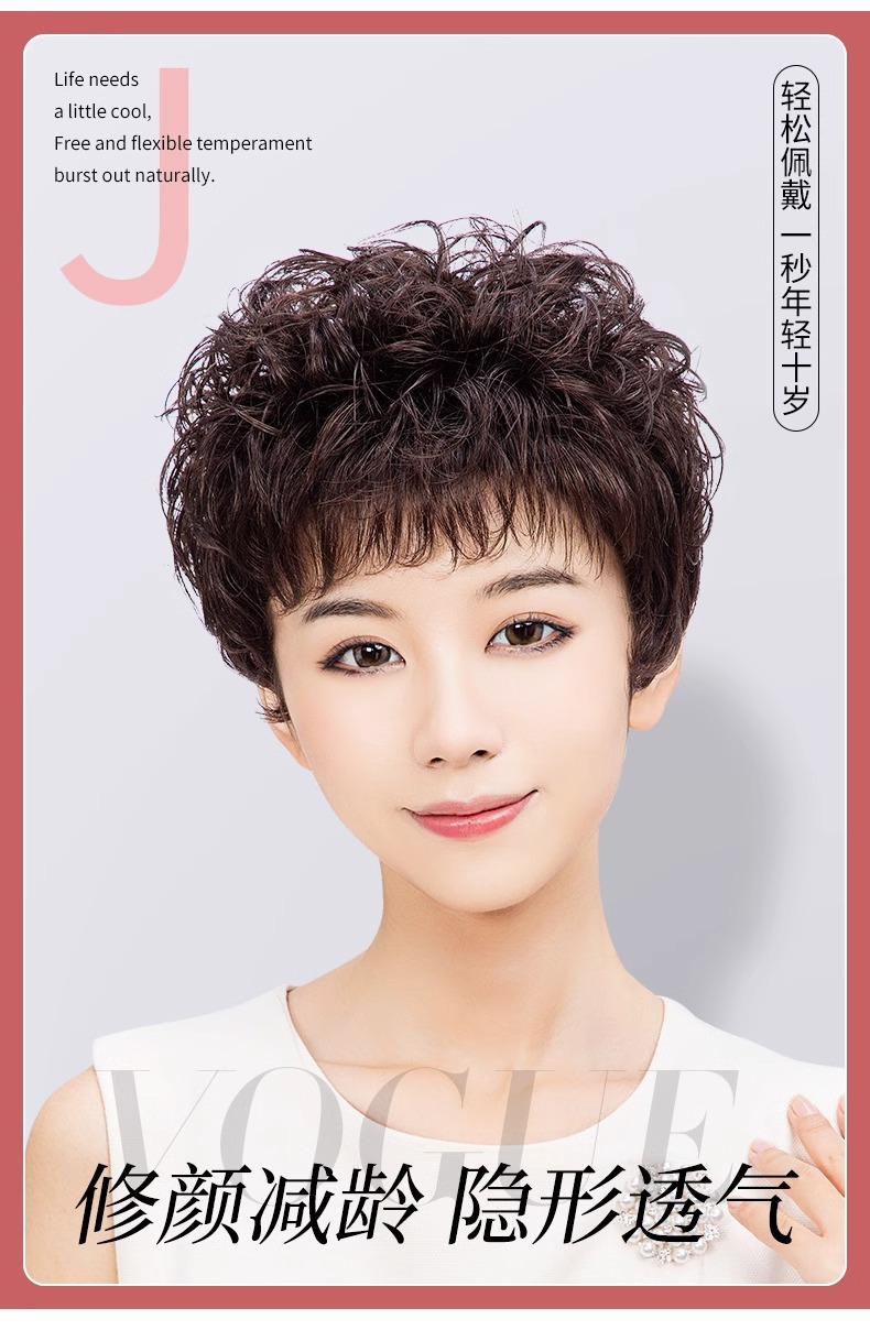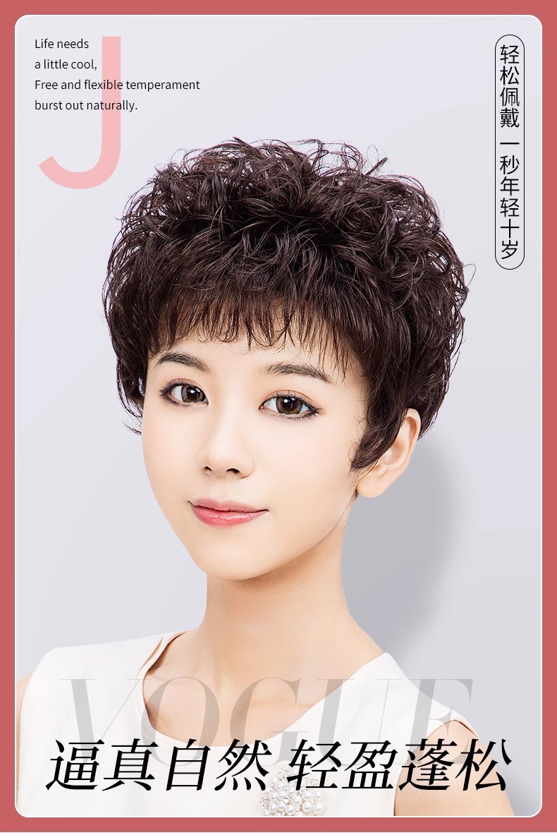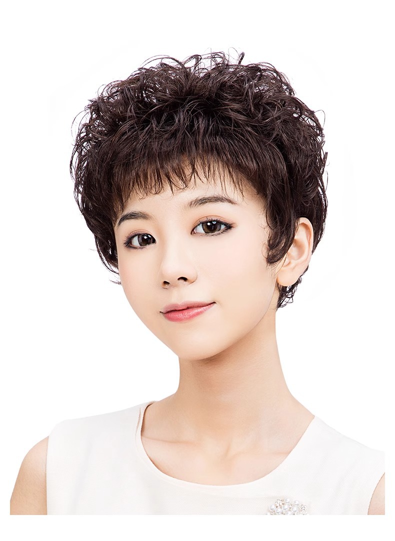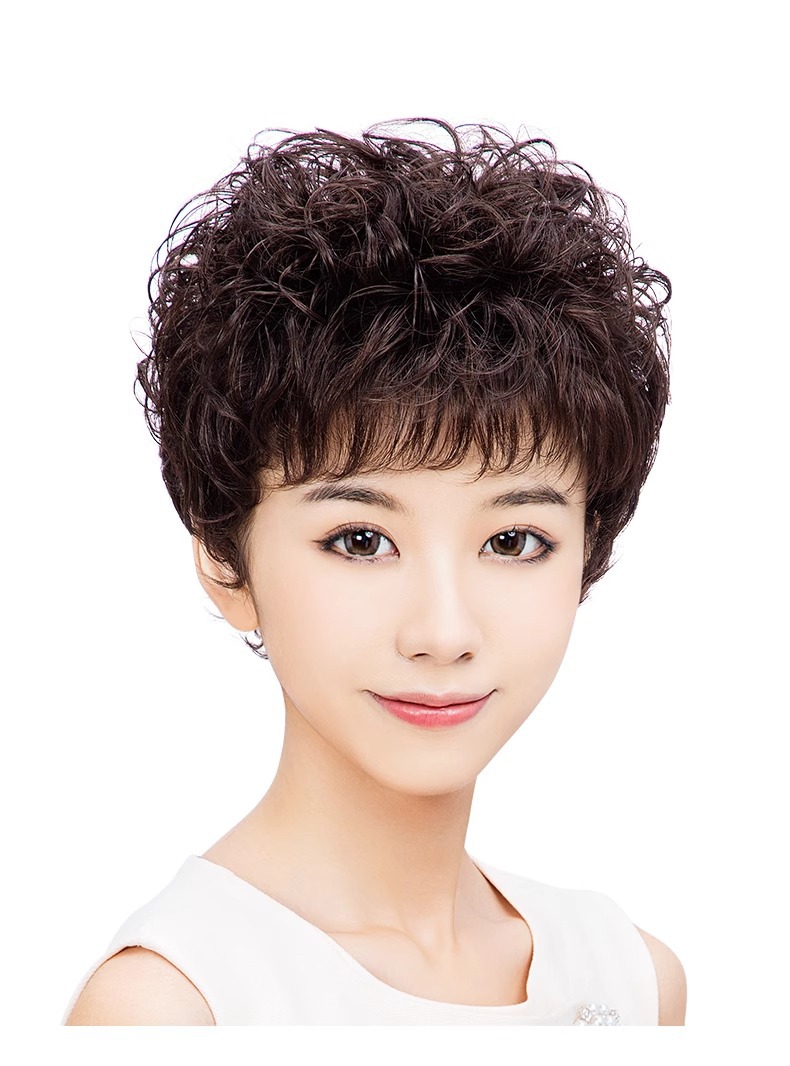 短卷发 妈妈假发自然整顶真头发套女士蓬松遮白发短发假发女许昌