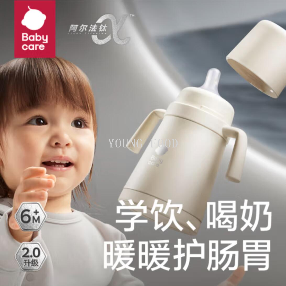 包邮!babycare小月龄歪头仿母乳防呛保温杯-300ml-里瑟米-内钛款
